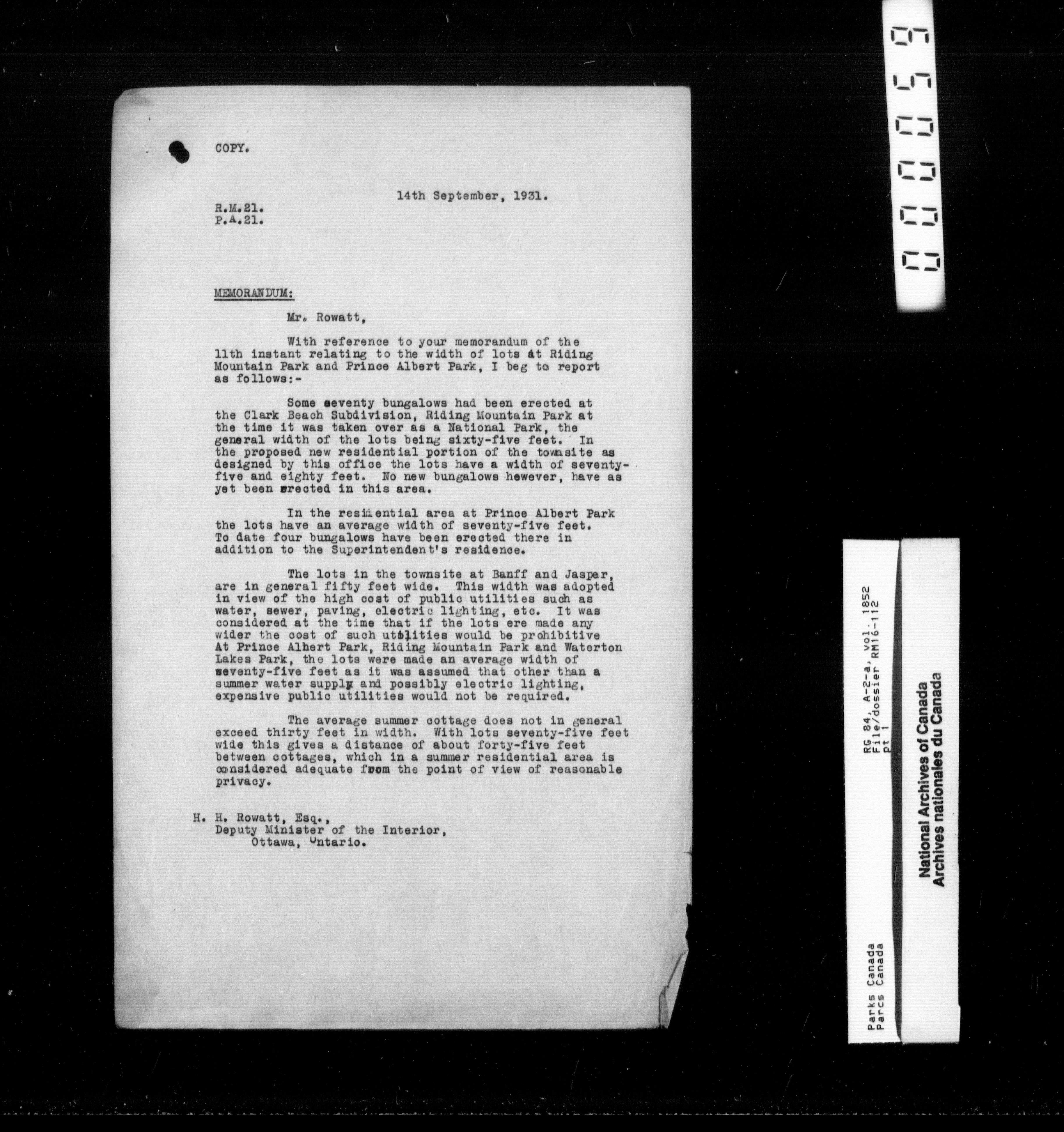 Department of Canadian Heritage, Canadian Parks Service : Park/subject classification system - 9776