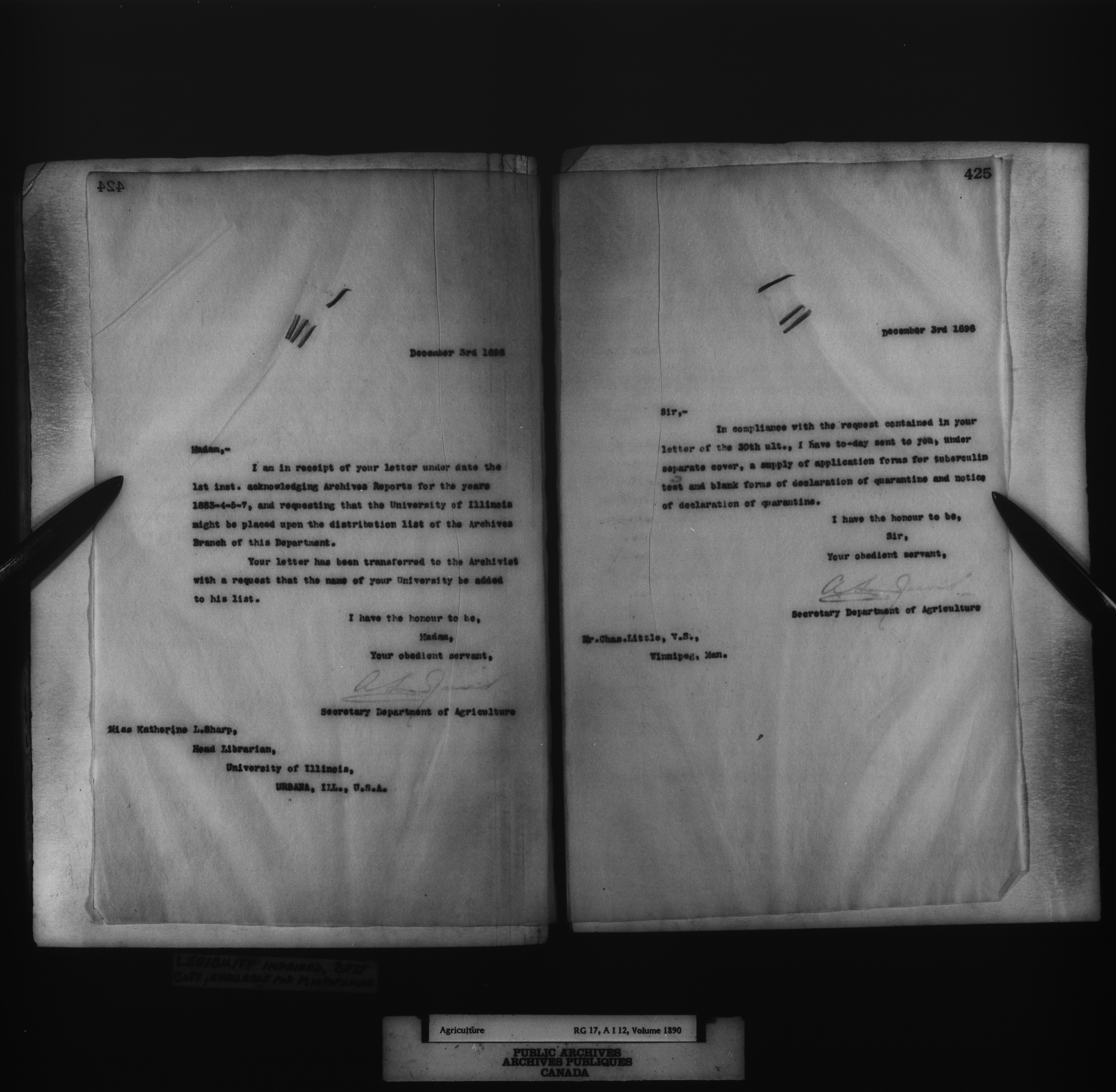 Department of Agriculture : Secretary and Assistant Deputy Minister's letterbooks, 1881-1916 - 978