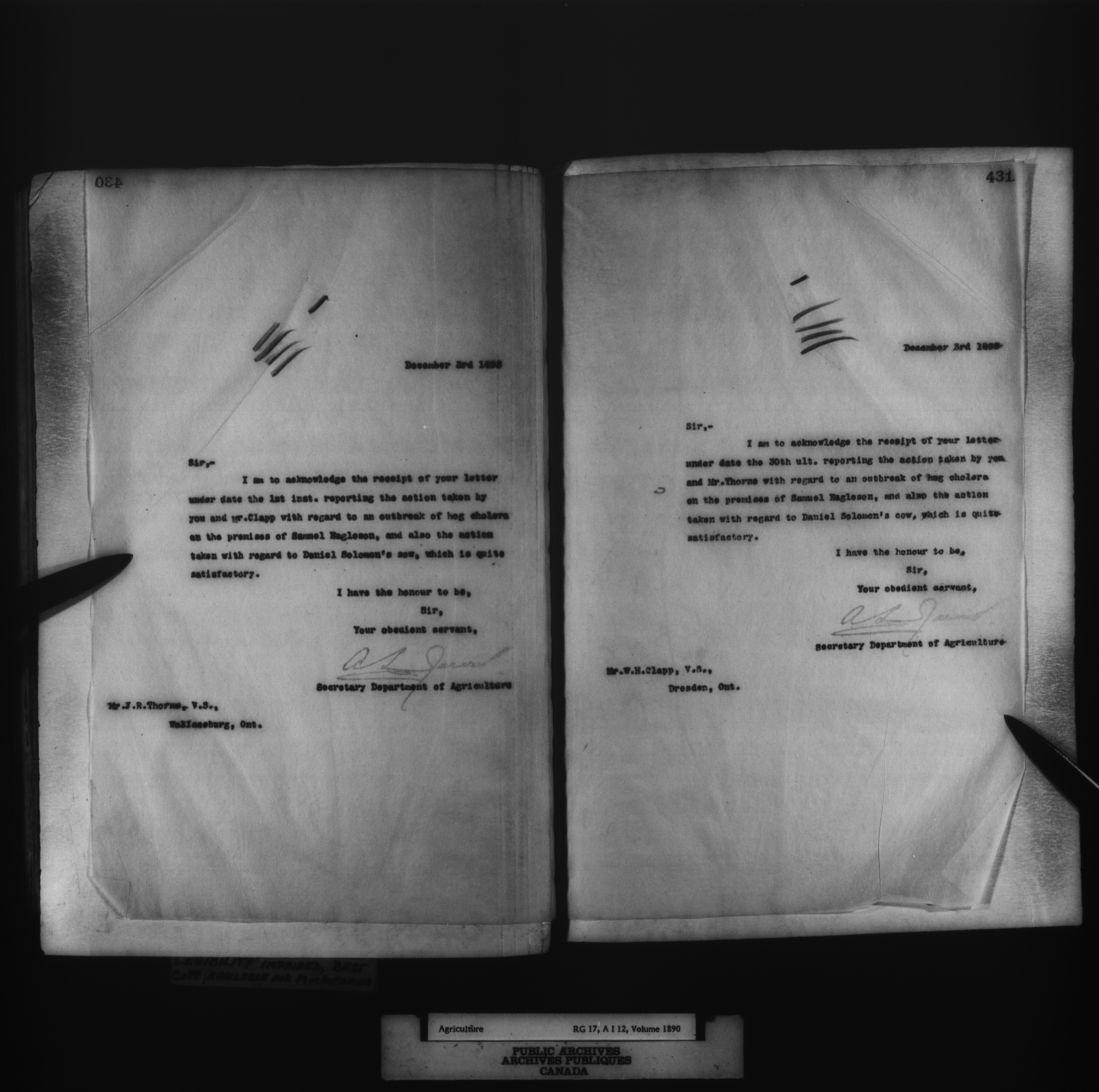 Department of Agriculture : Secretary and Assistant Deputy Minister's letterbooks, 1881-1916 - 978