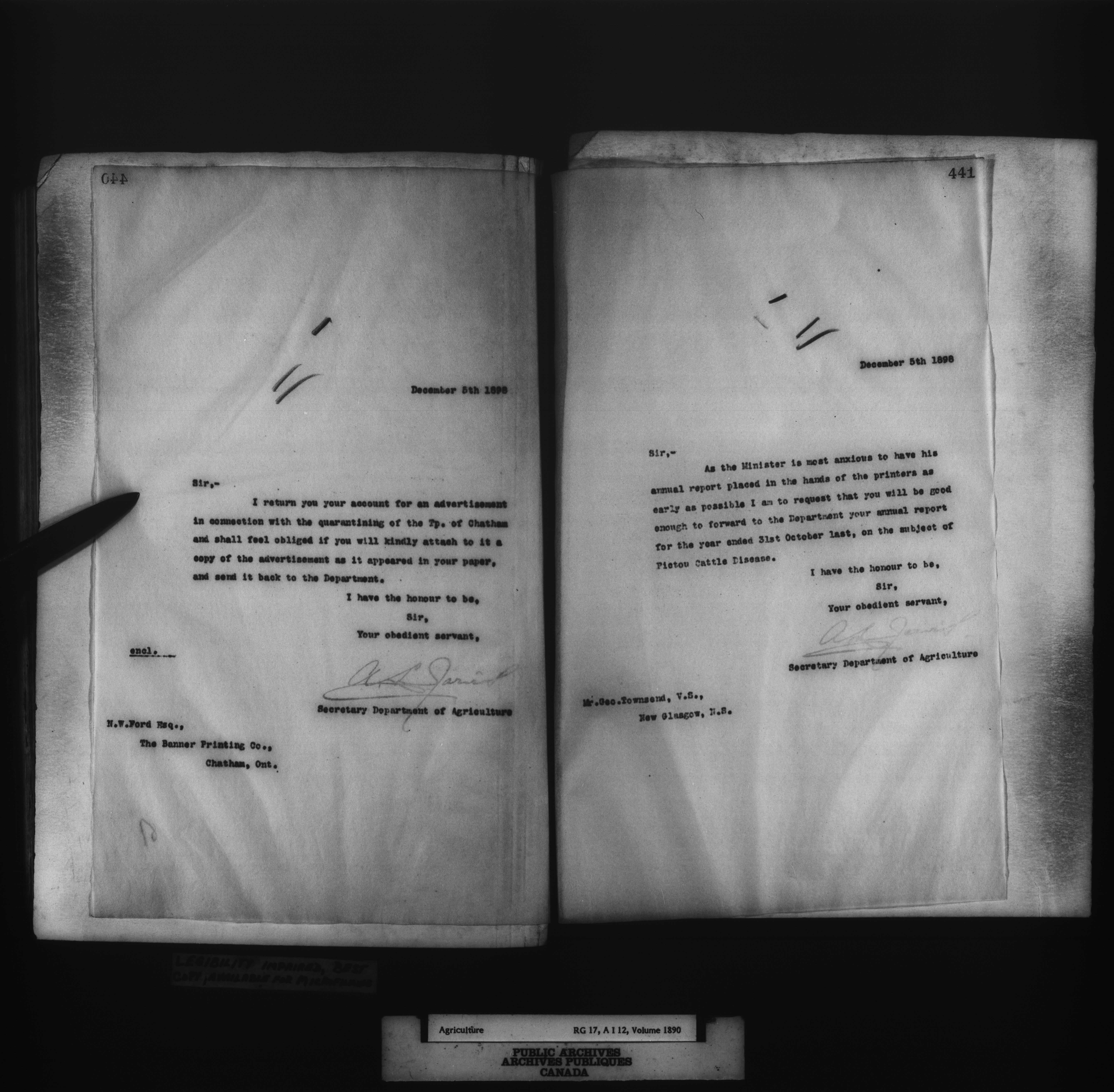 Department of Agriculture : Secretary and Assistant Deputy Minister's letterbooks, 1881-1916 : T-978
