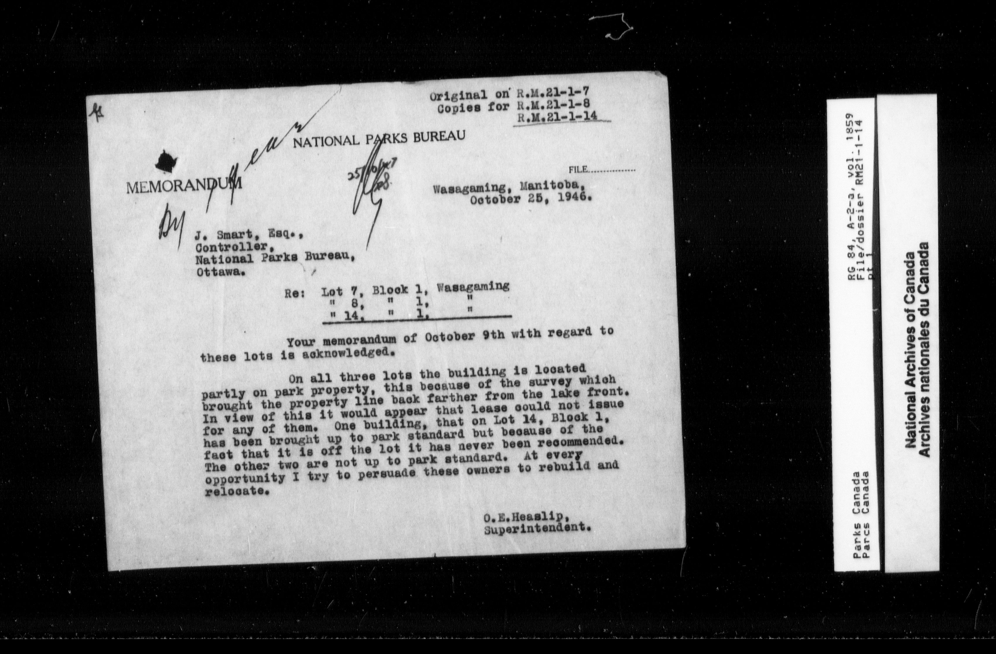 Department of Canadian Heritage, Canadian Parks Service : Park/subject classification system - 9782