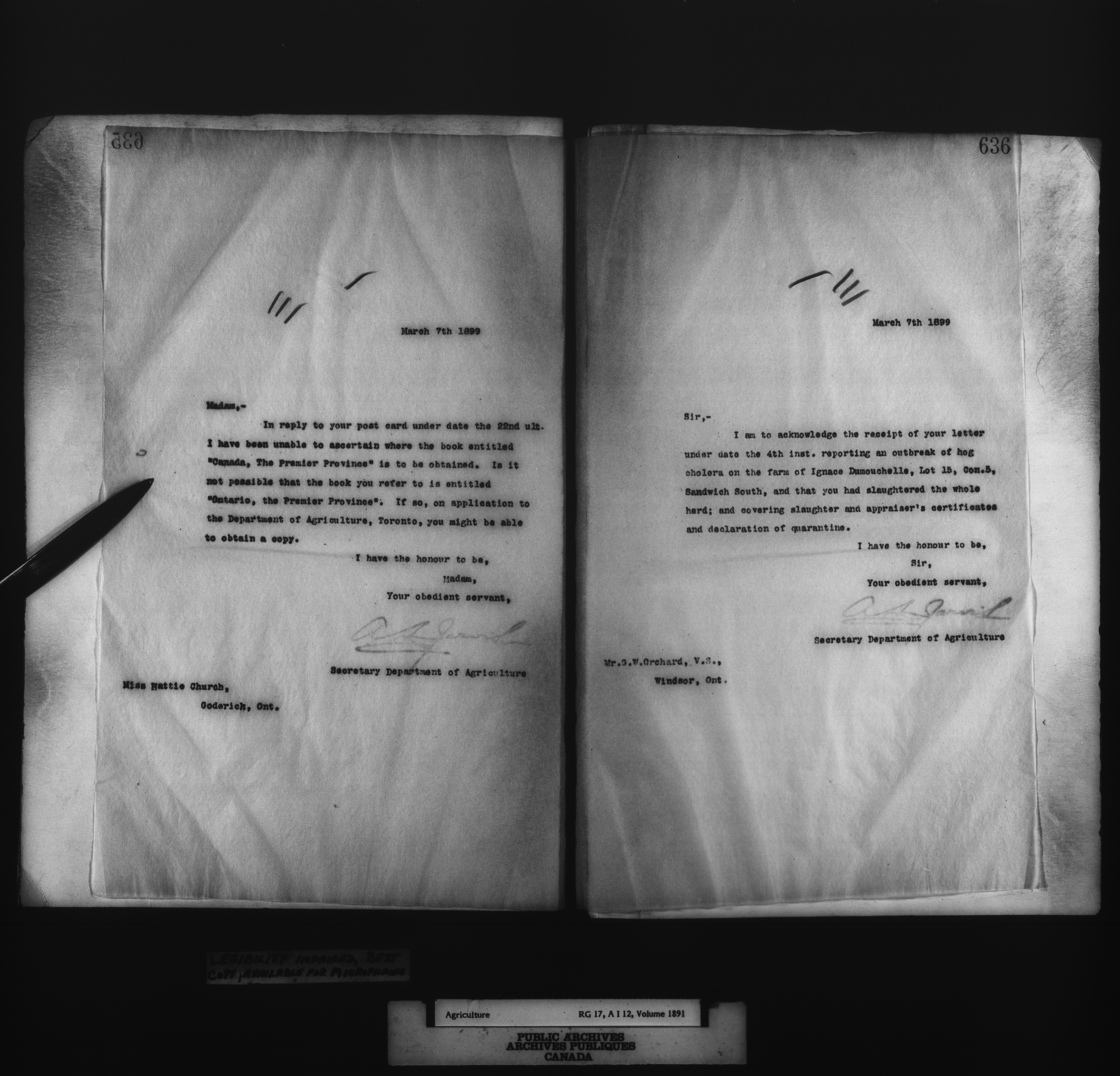 Department of Agriculture : Secretary and Assistant Deputy Minister's letterbooks, 1881-1916 - 979