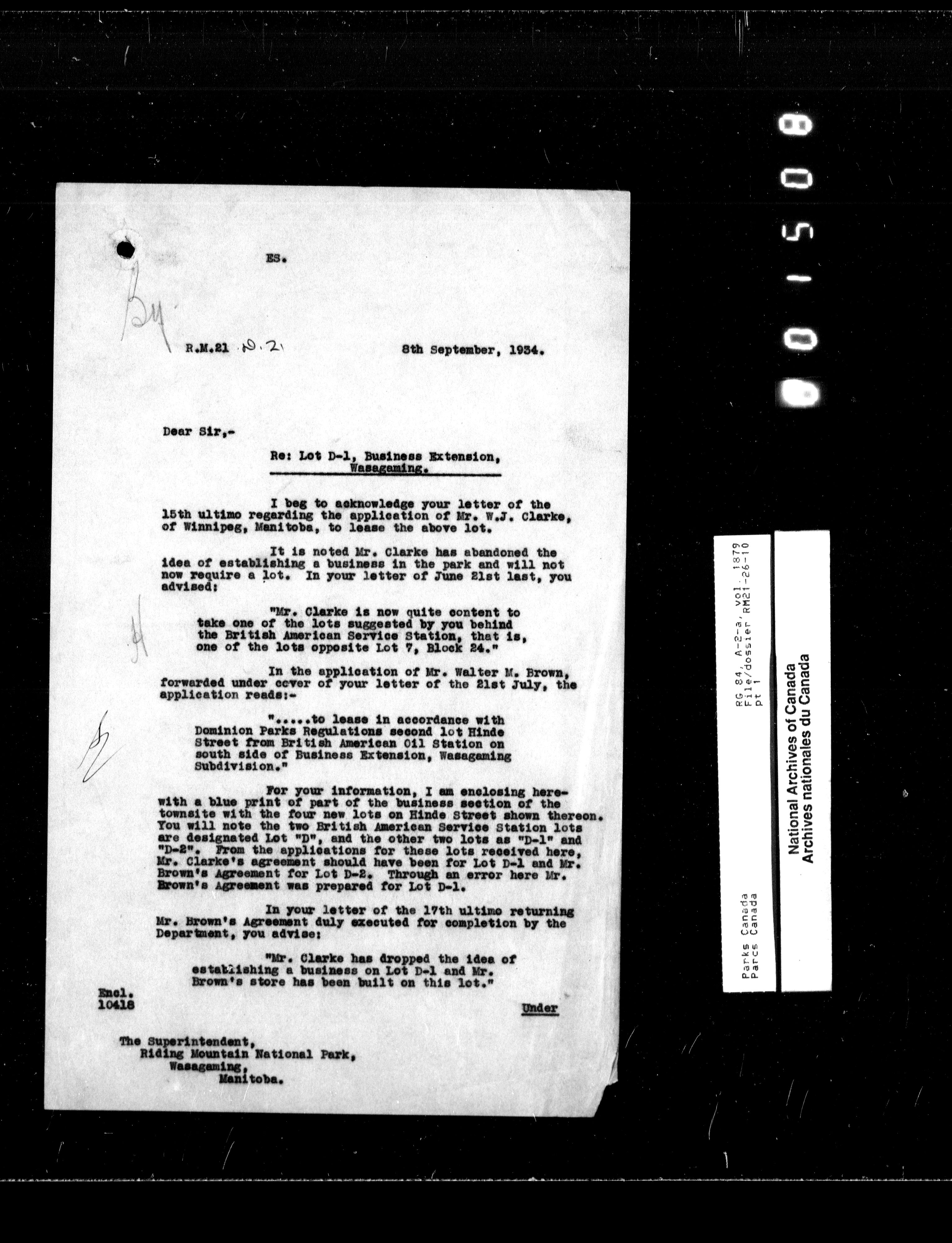 Department of Canadian Heritage, Canadian Parks Service : Park/subject classification system - 9795
