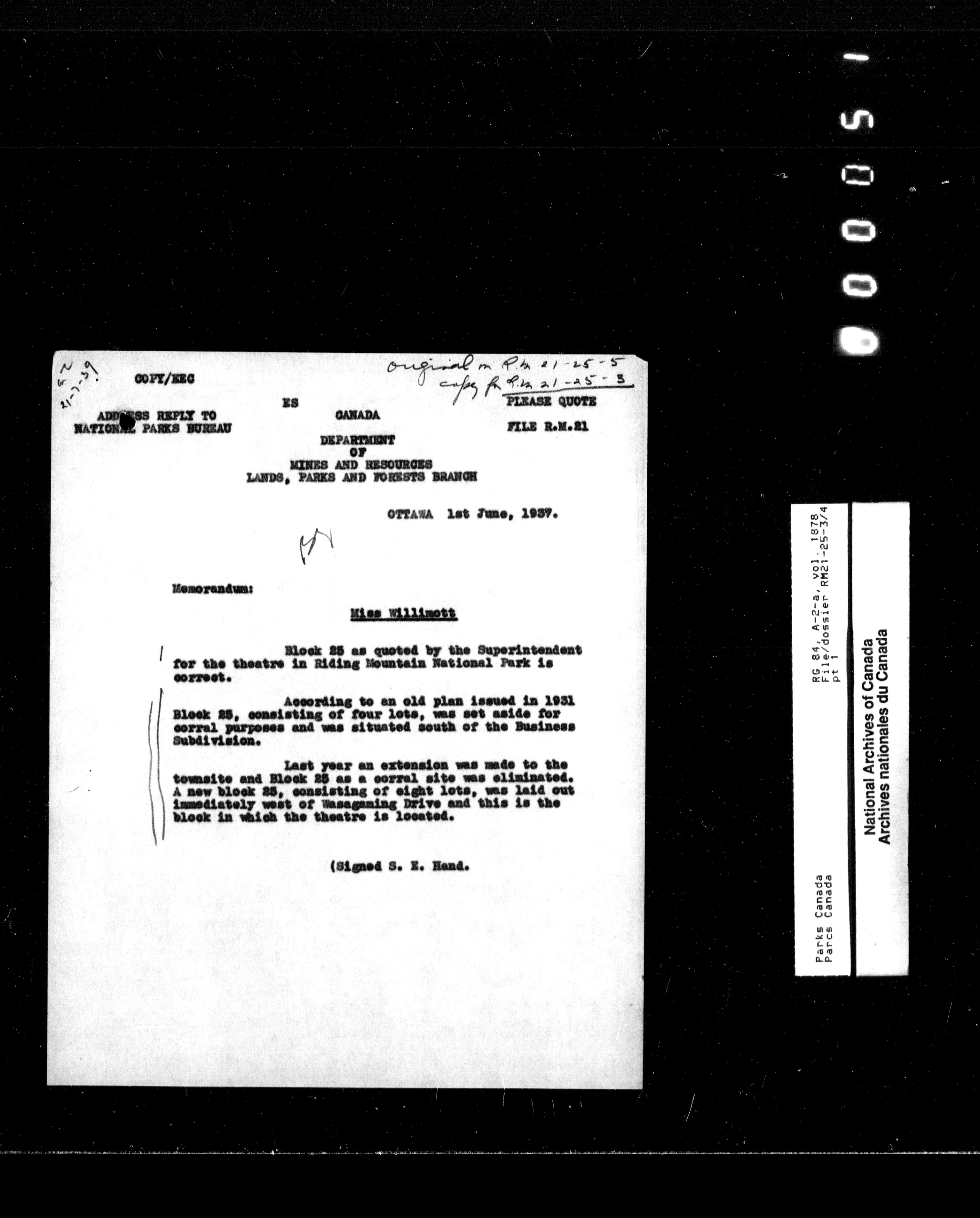 Department of Canadian Heritage, Canadian Parks Service : Park/subject classification system - 9795