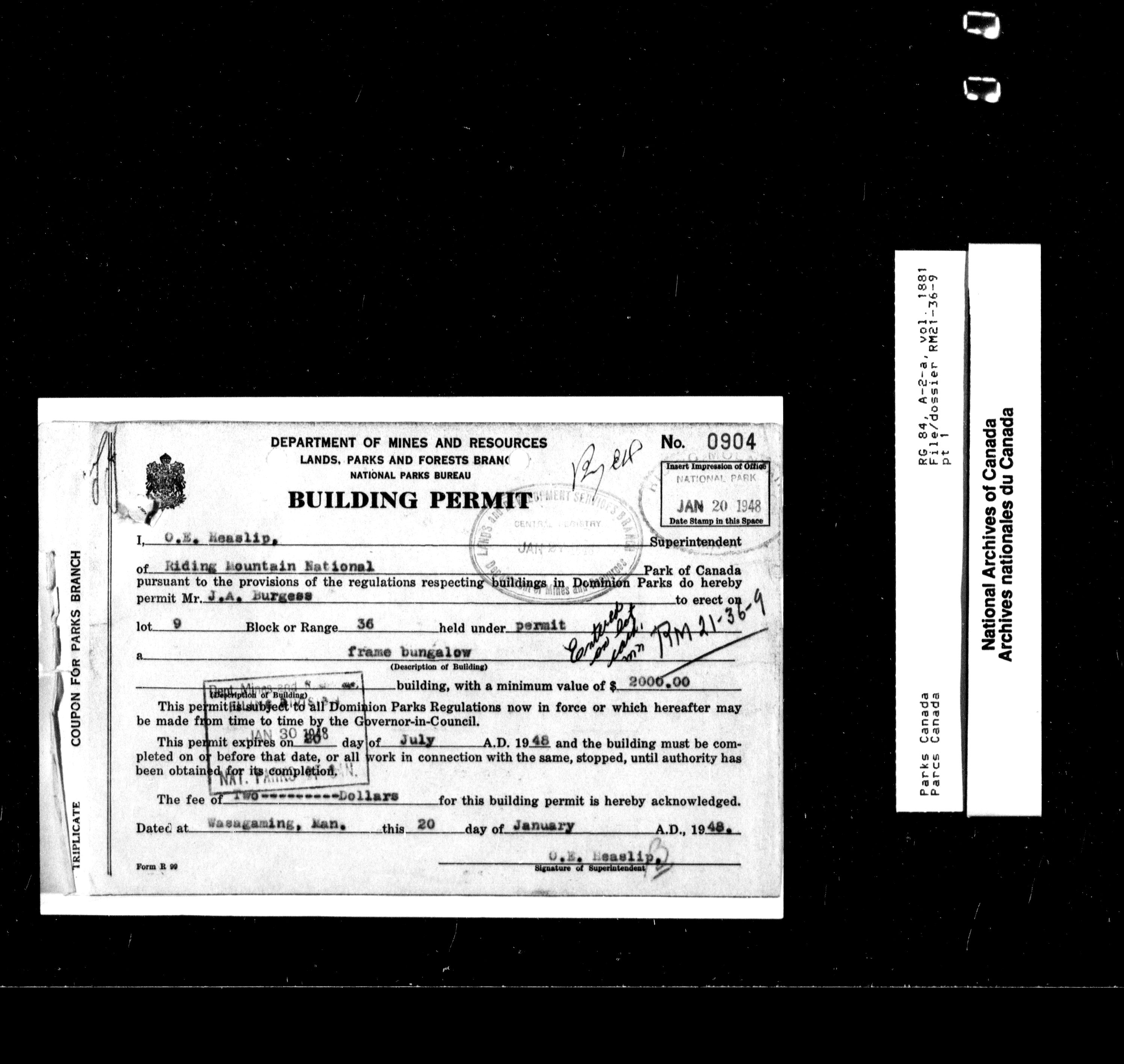 Department of Canadian Heritage, Canadian Parks Service : Park/subject classification system - 9797