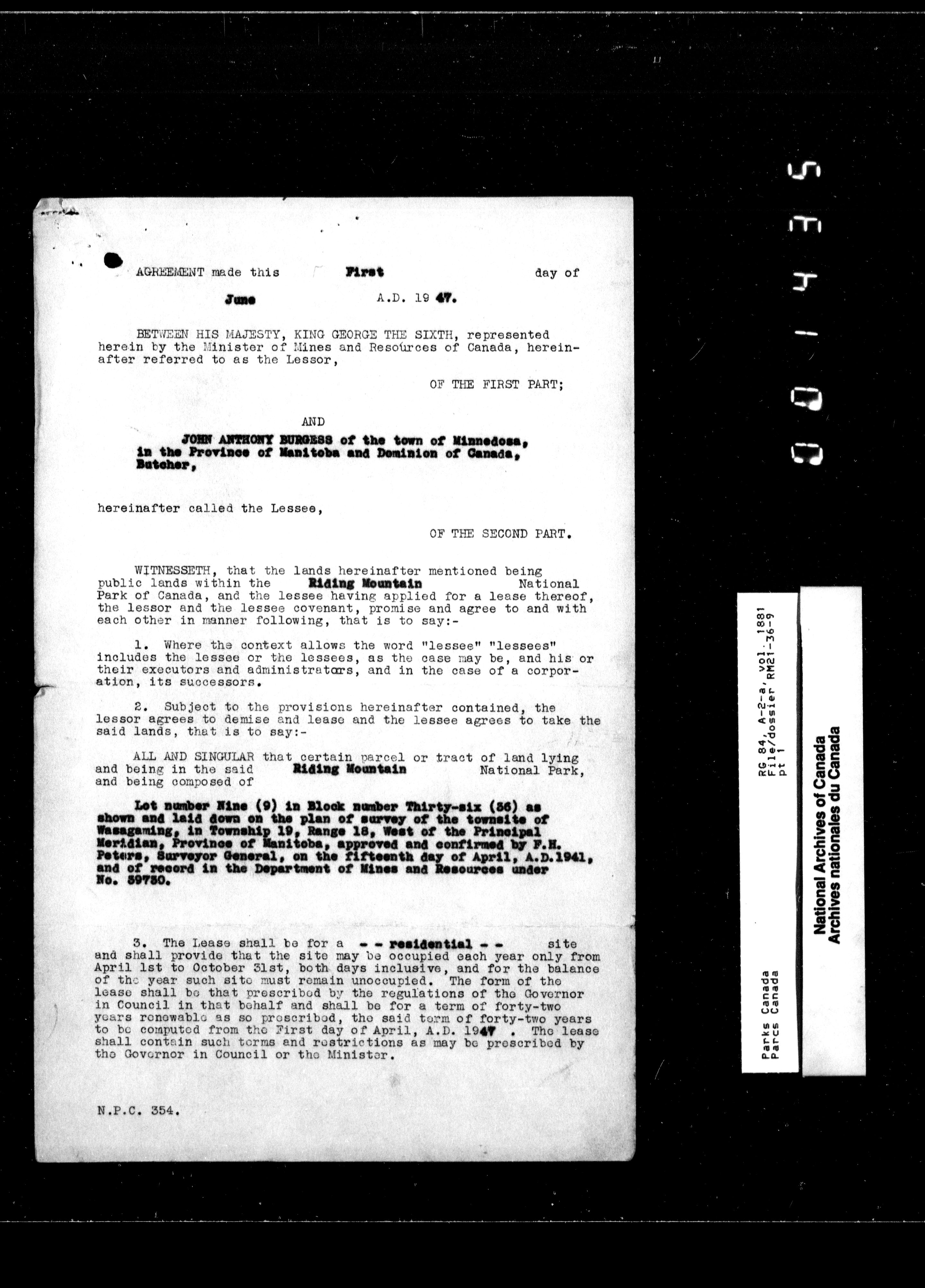 Department of Canadian Heritage, Canadian Parks Service : Park/subject classification system - 9797