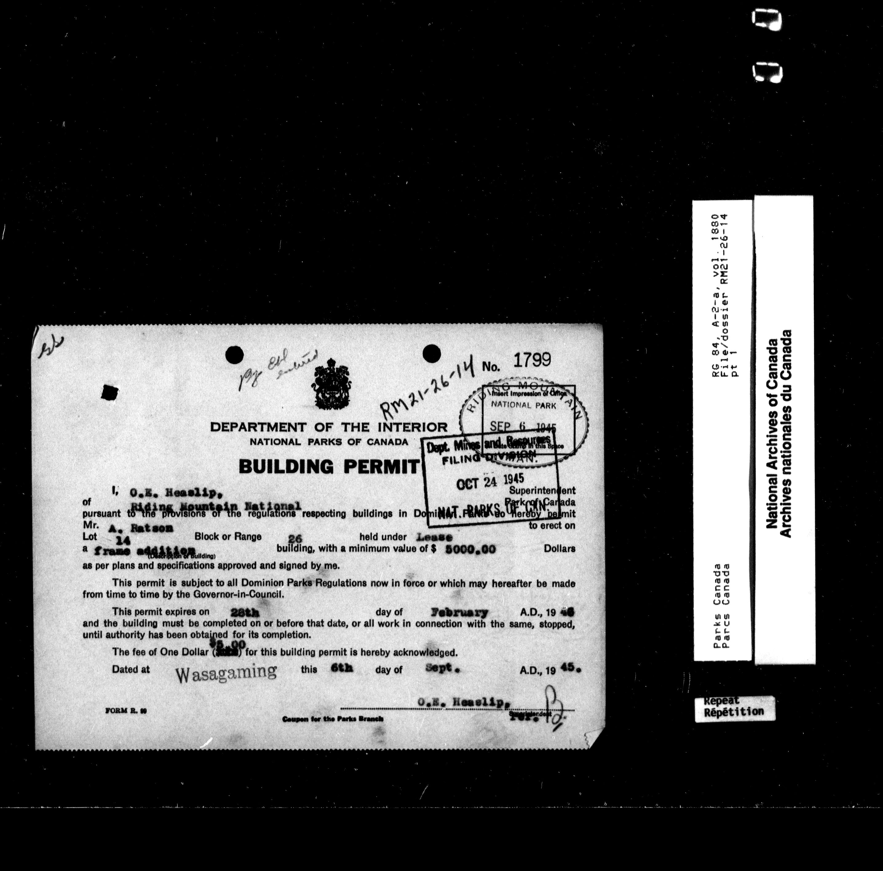 Department of Canadian Heritage, Canadian Parks Service : Park/subject classification system - 9797