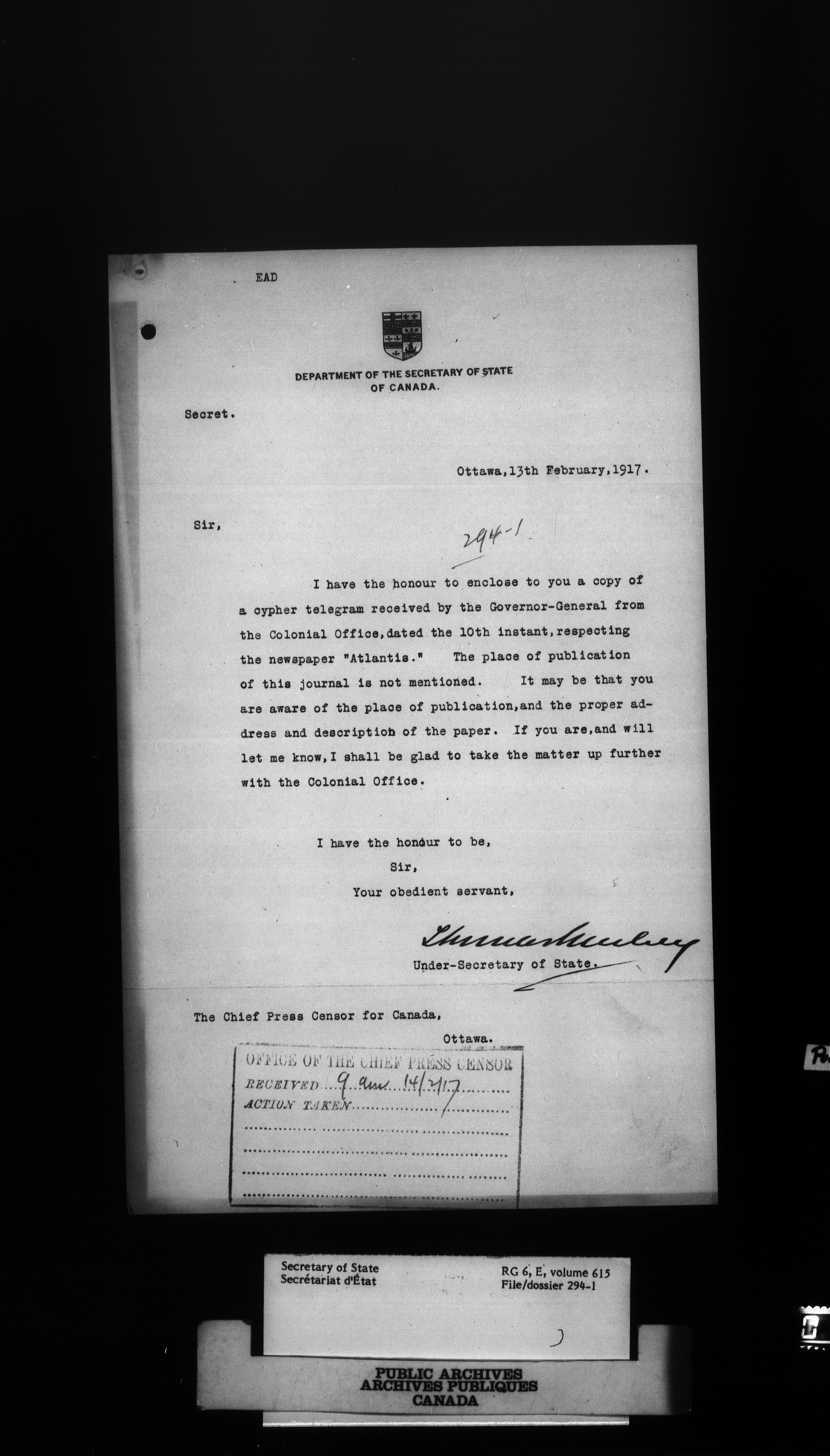 Secretary of State : Chief Press Censor, 1915-1920 - 98