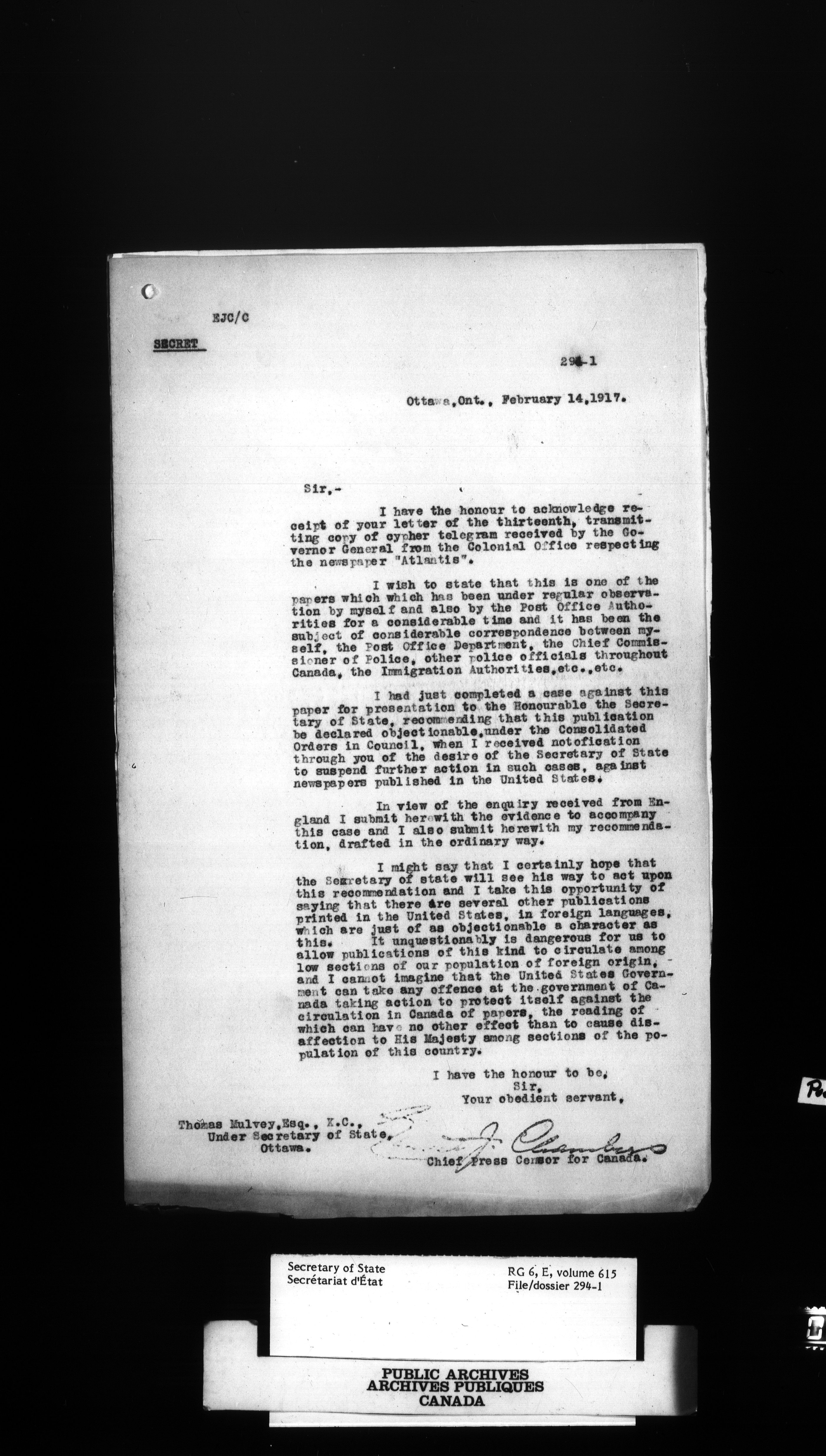 Secretary of State : Chief Press Censor, 1915-1920 - 98
