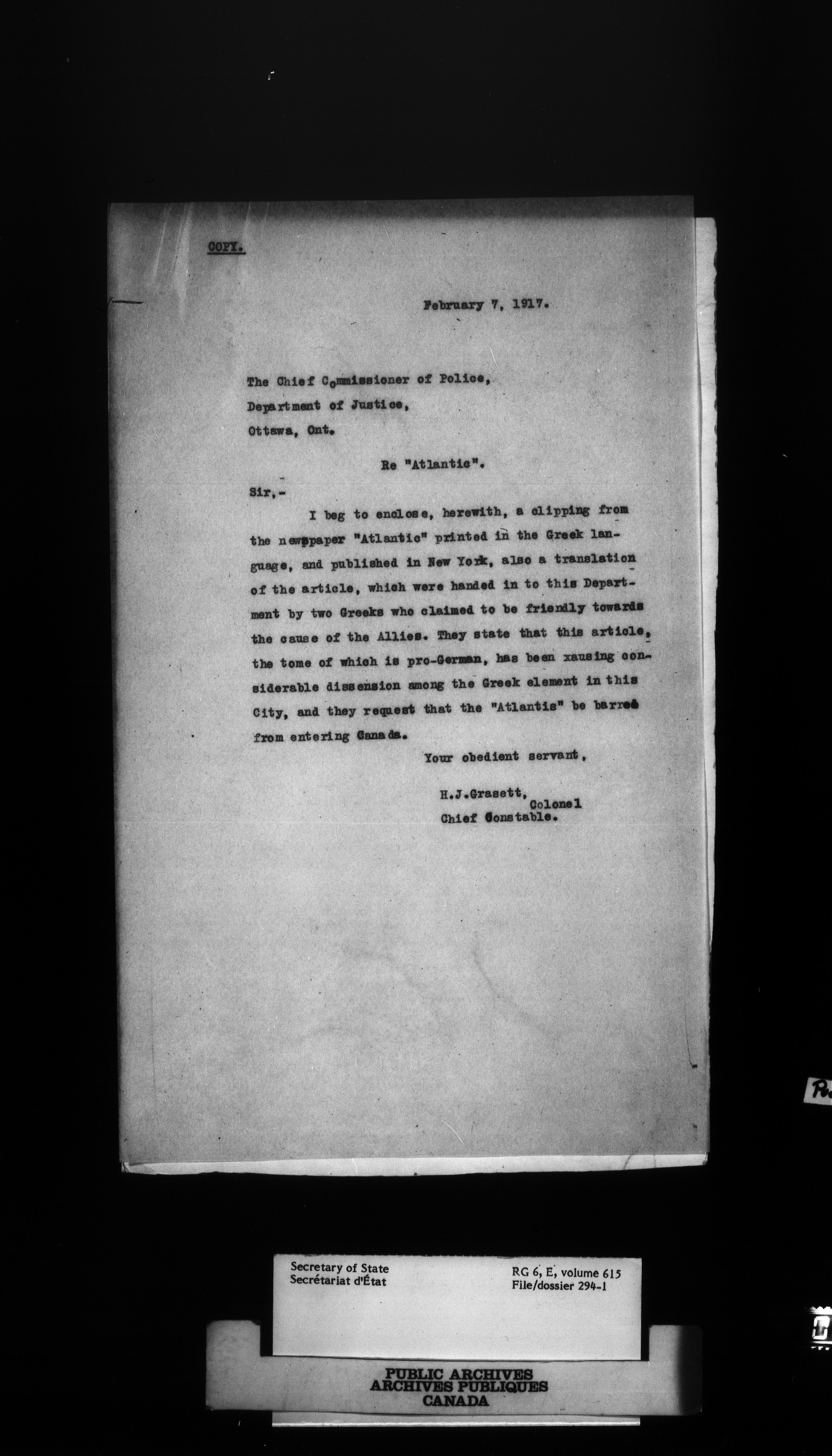 Secretary of State : Chief Press Censor, 1915-1920 - 98