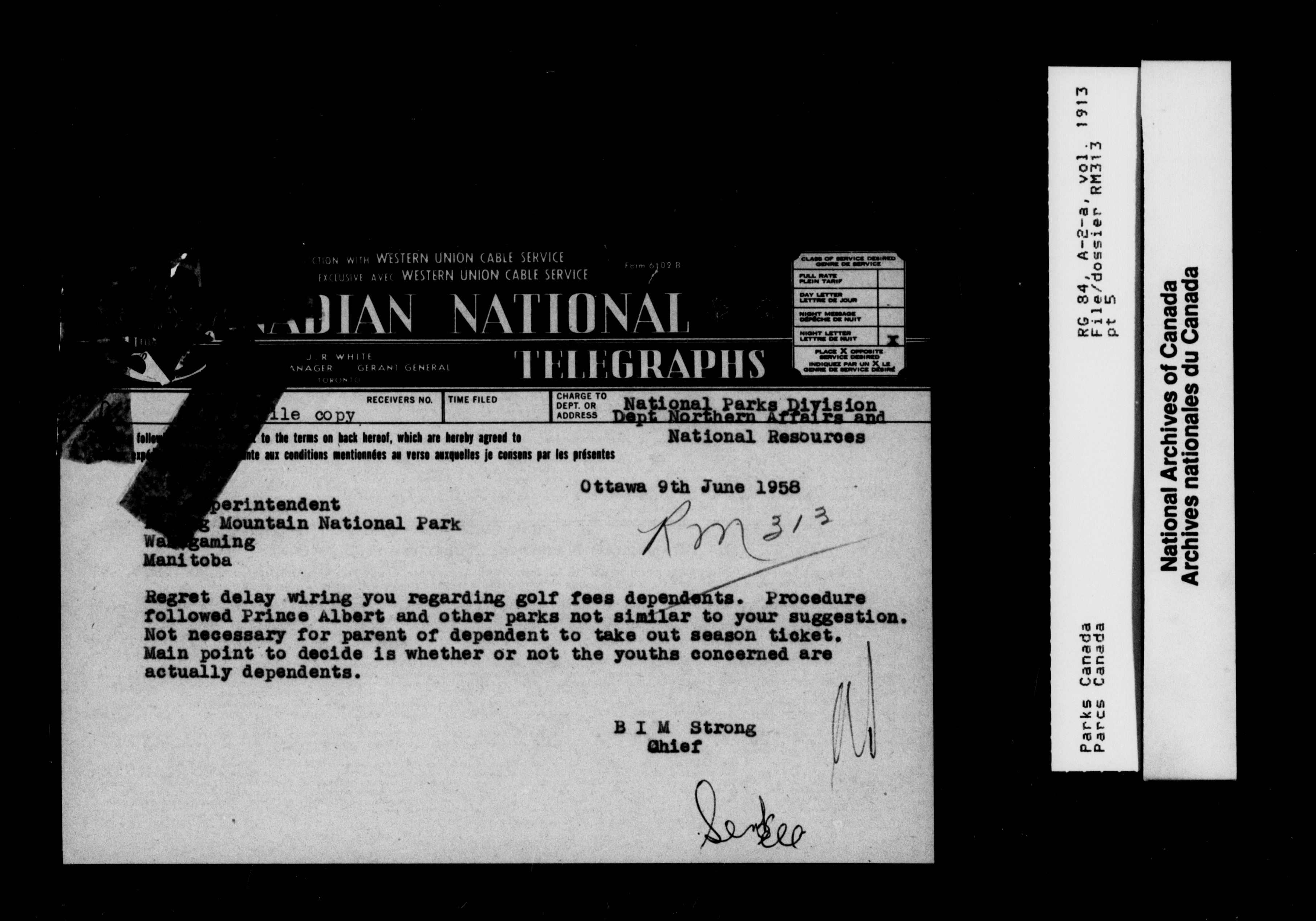 Department of Canadian Heritage, Canadian Parks Service : Park/subject classification system - 9804