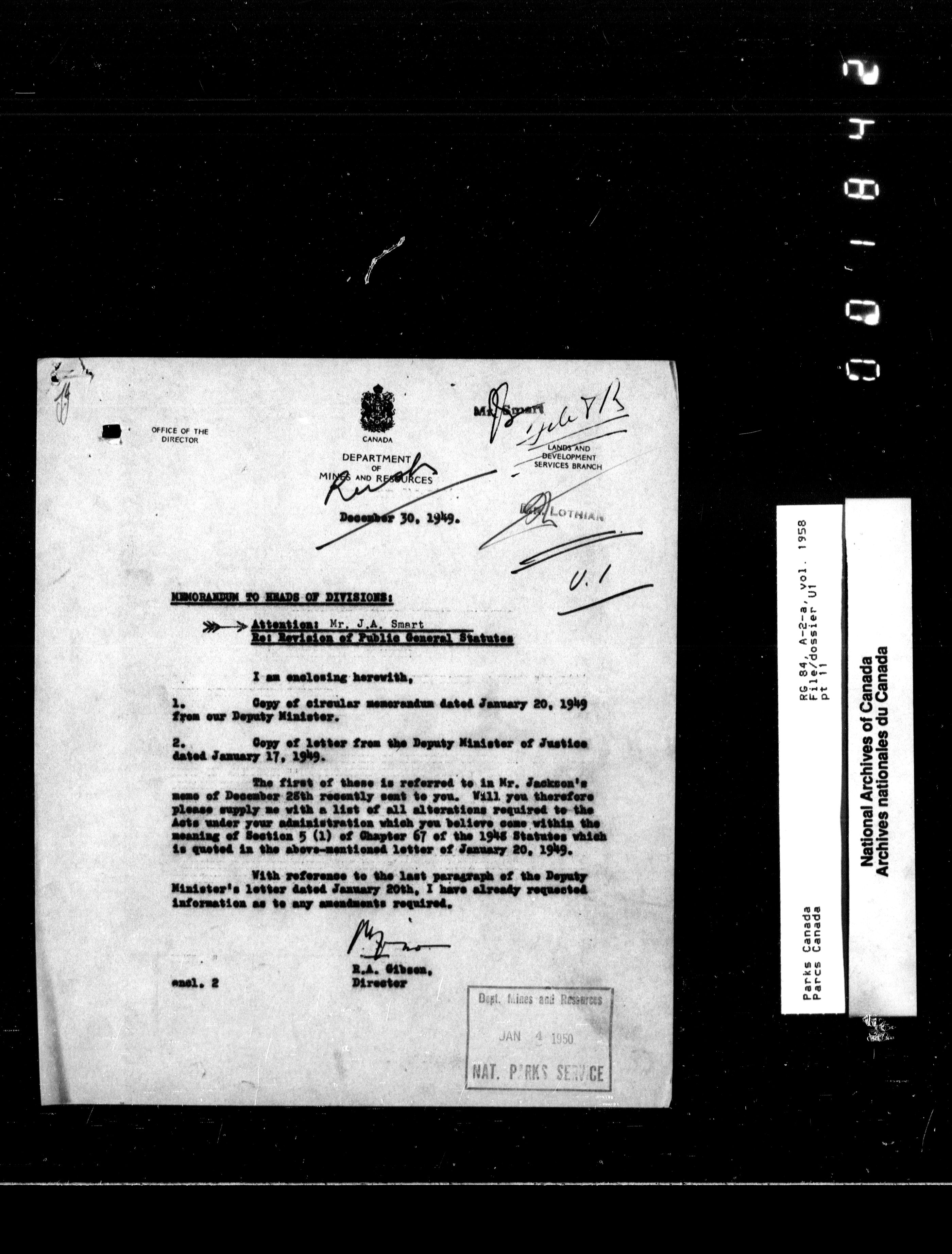 Department of Canadian Heritage, Canadian Parks Service : Park/subject classification system - 9807