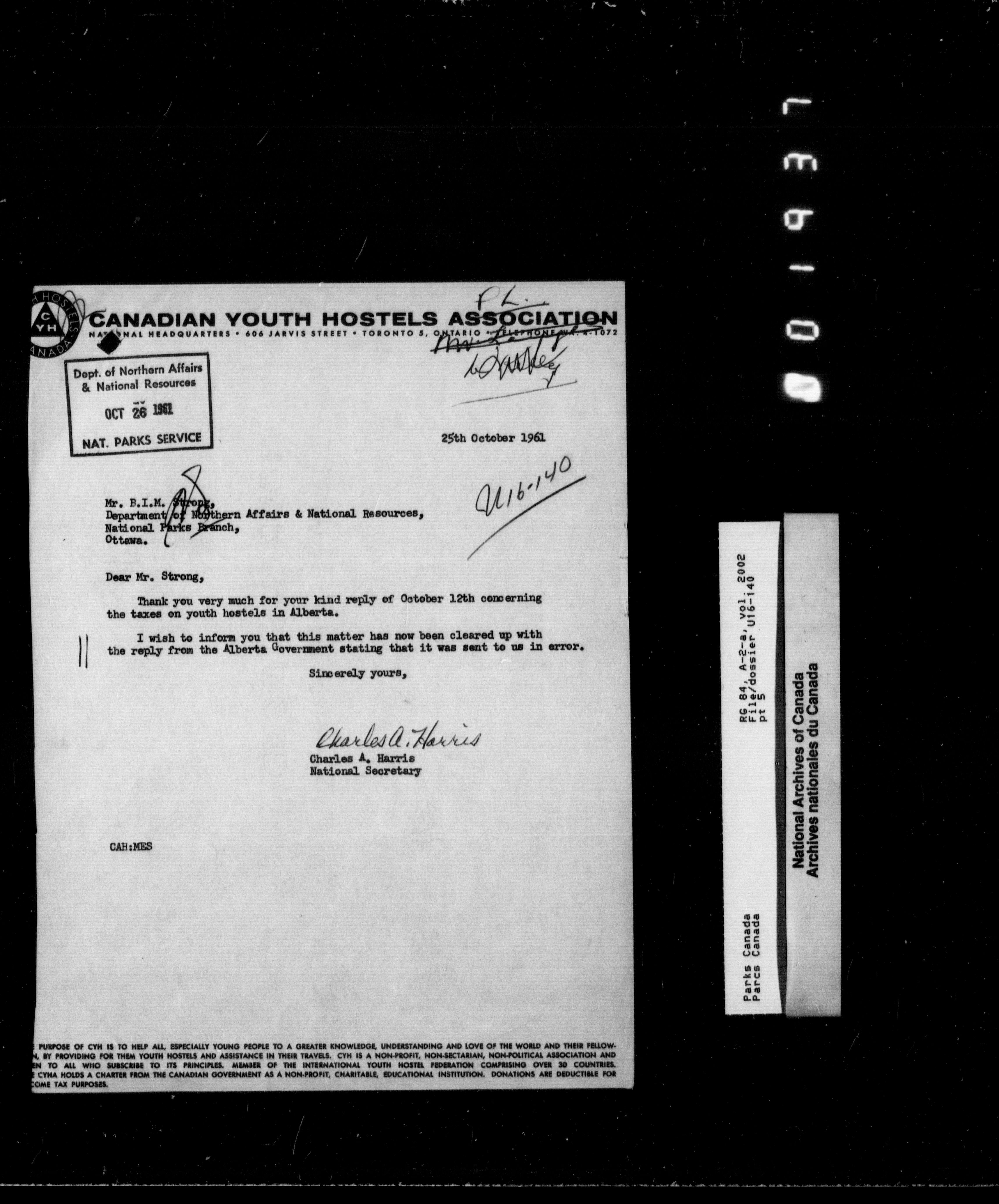 Department of Canadian Heritage, Canadian Parks Service : Park/subject classification system : T-9816
