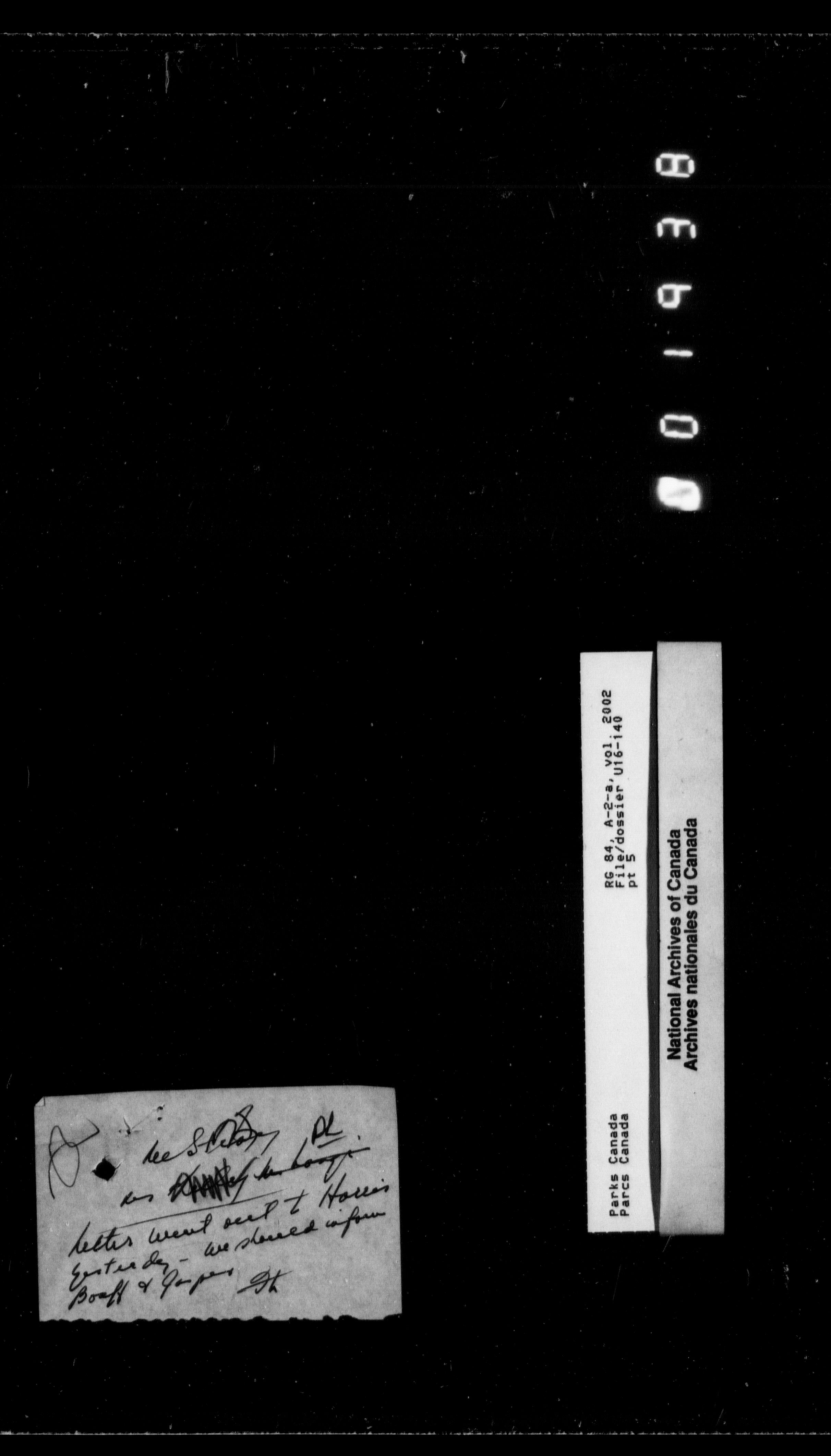 Department of Canadian Heritage, Canadian Parks Service : Park/subject classification system - 9816