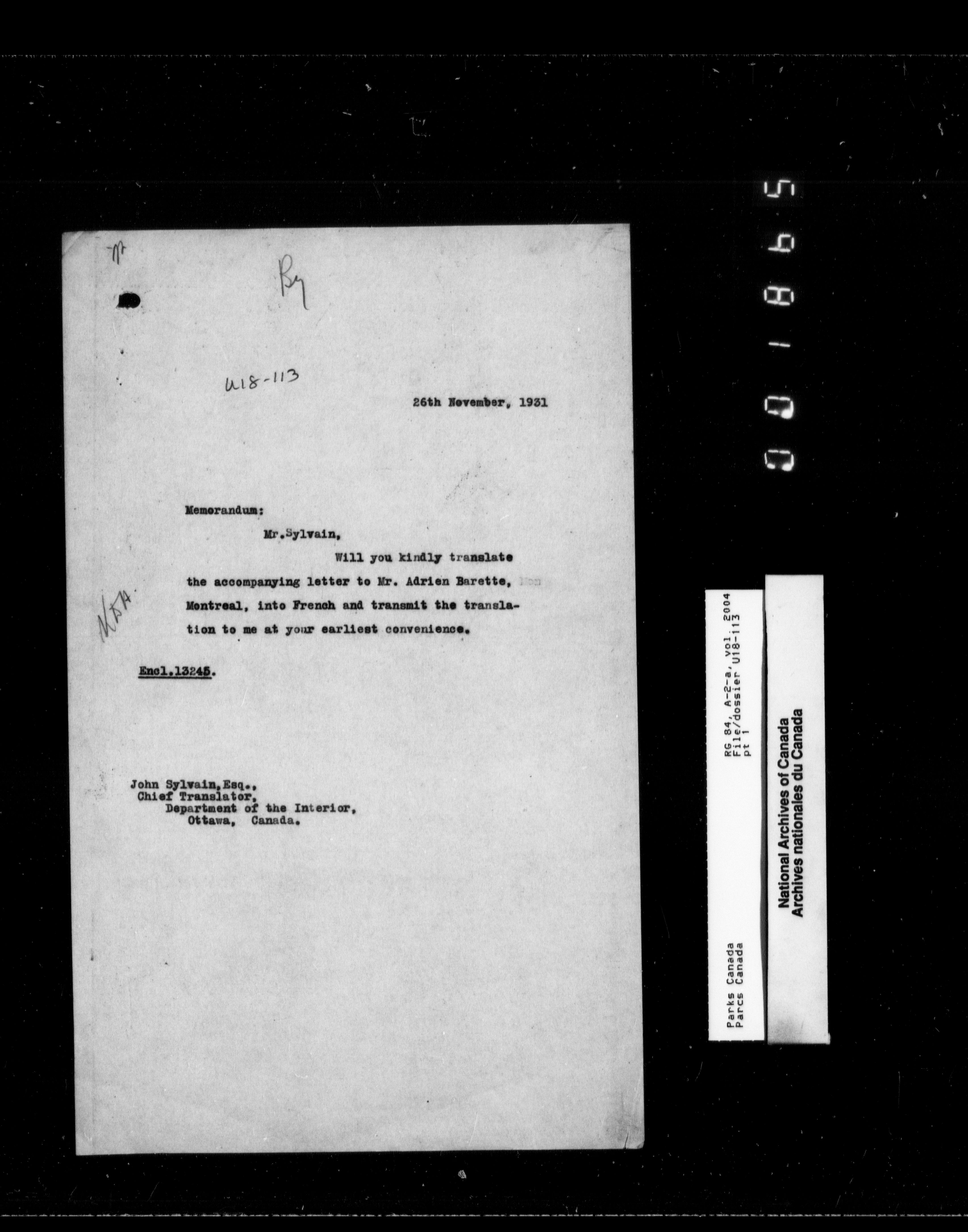 Department of Canadian Heritage, Canadian Parks Service : Park/subject classification system - 9818
