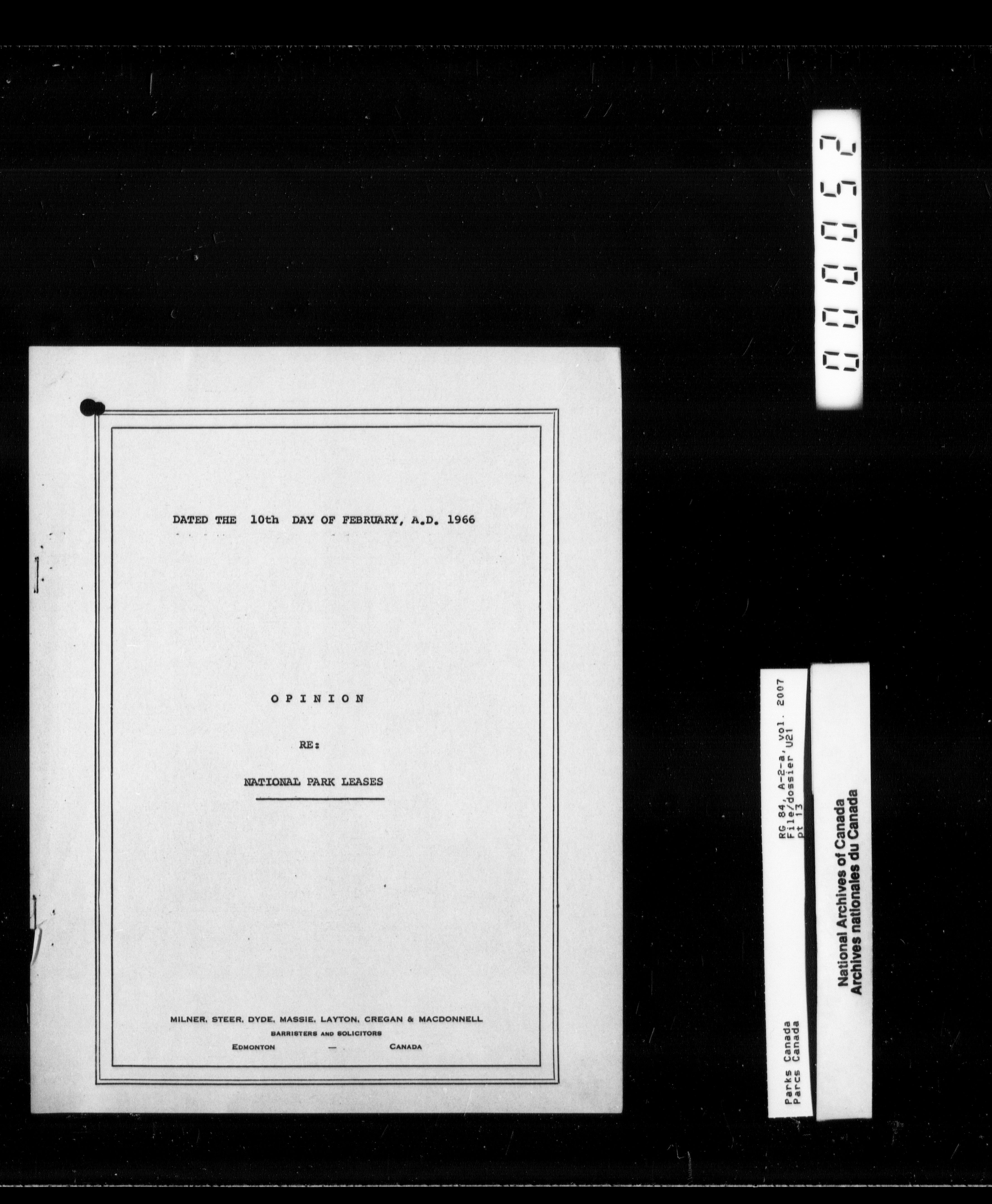 Department of Canadian Heritage, Canadian Parks Service : Park/subject classification system - 9822