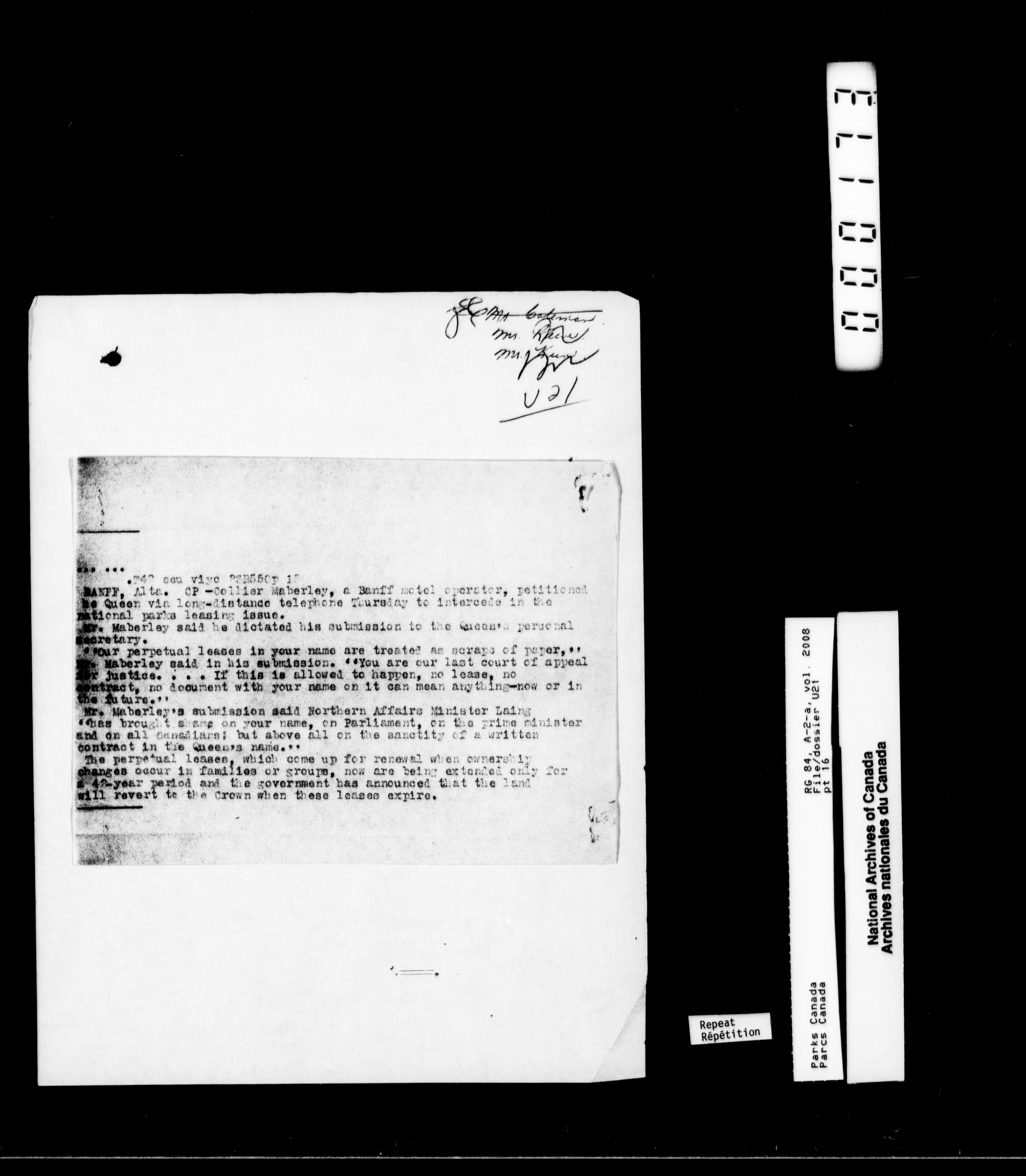 Department of Canadian Heritage, Canadian Parks Service : Park/subject classification system - 9823