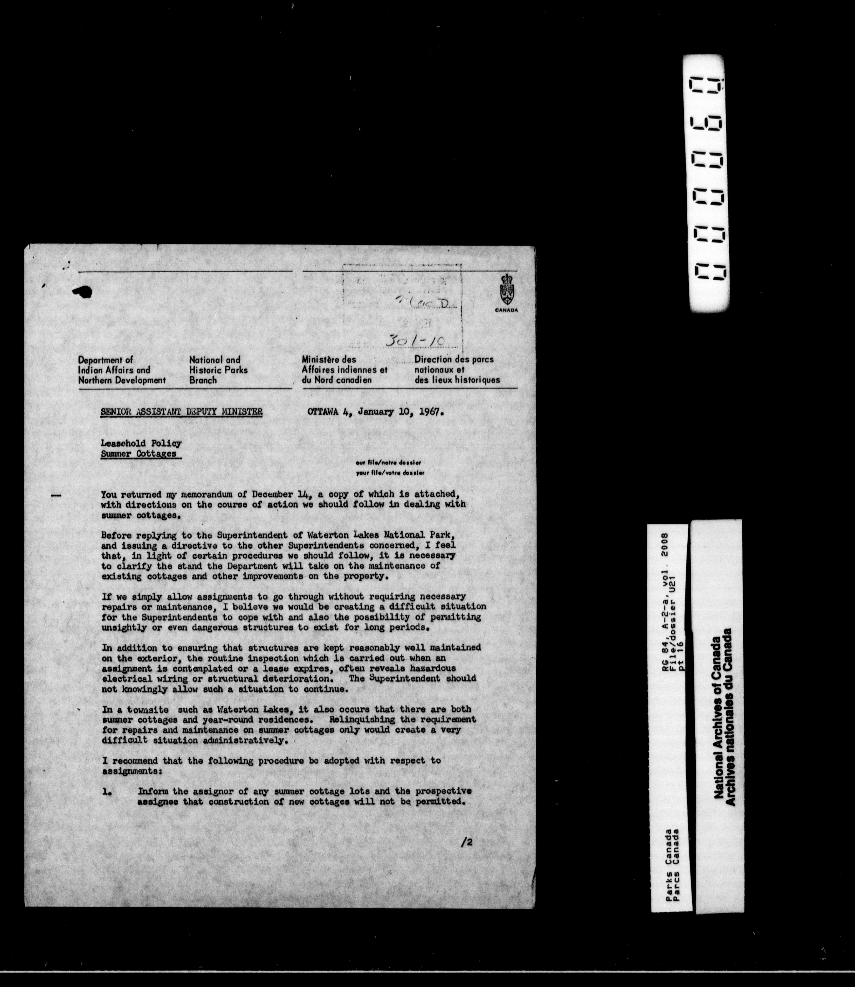 Department of Canadian Heritage, Canadian Parks Service : Park/subject classification system - 9823