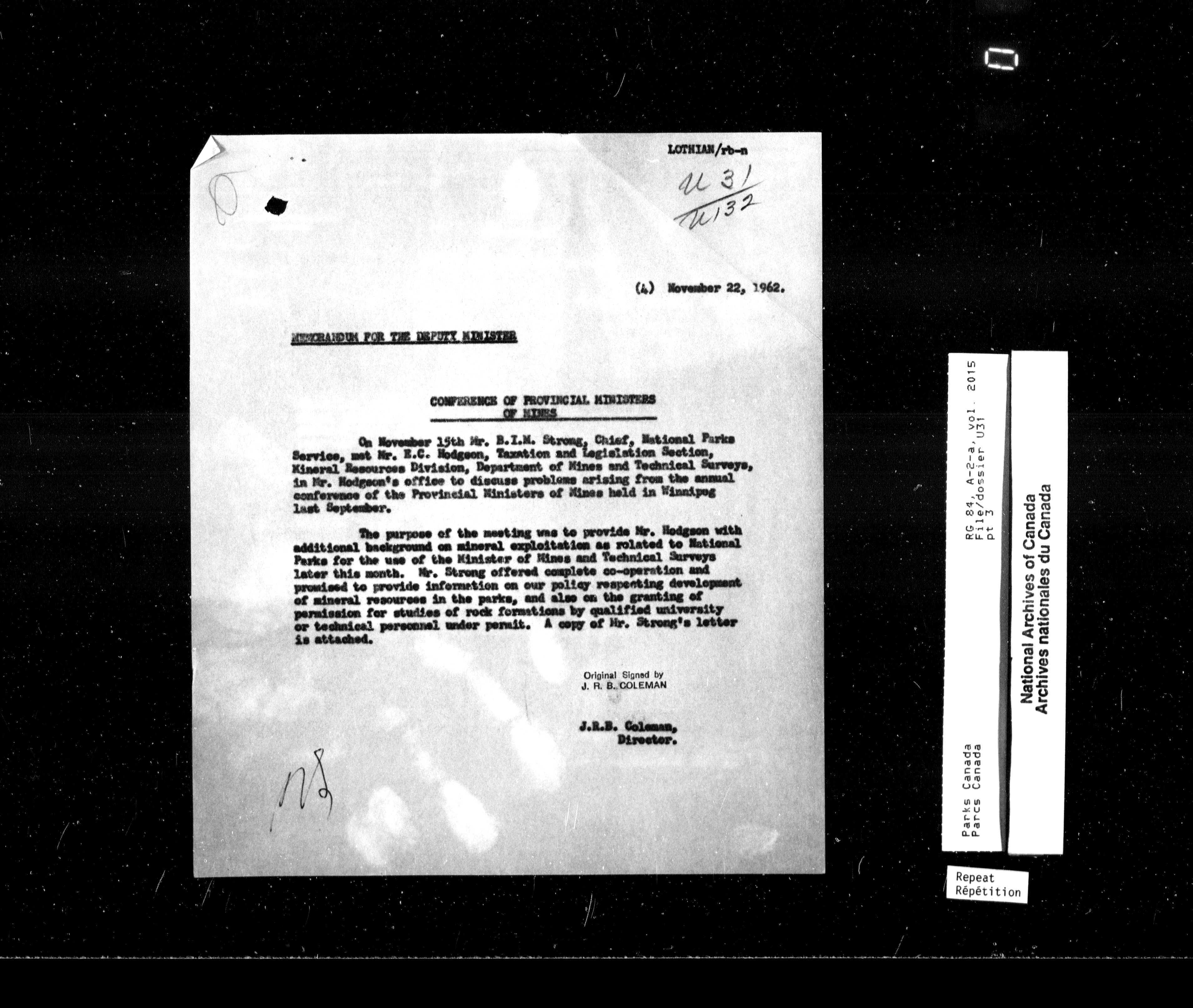 Department of Canadian Heritage, Canadian Parks Service : Park/subject classification system : T-9827