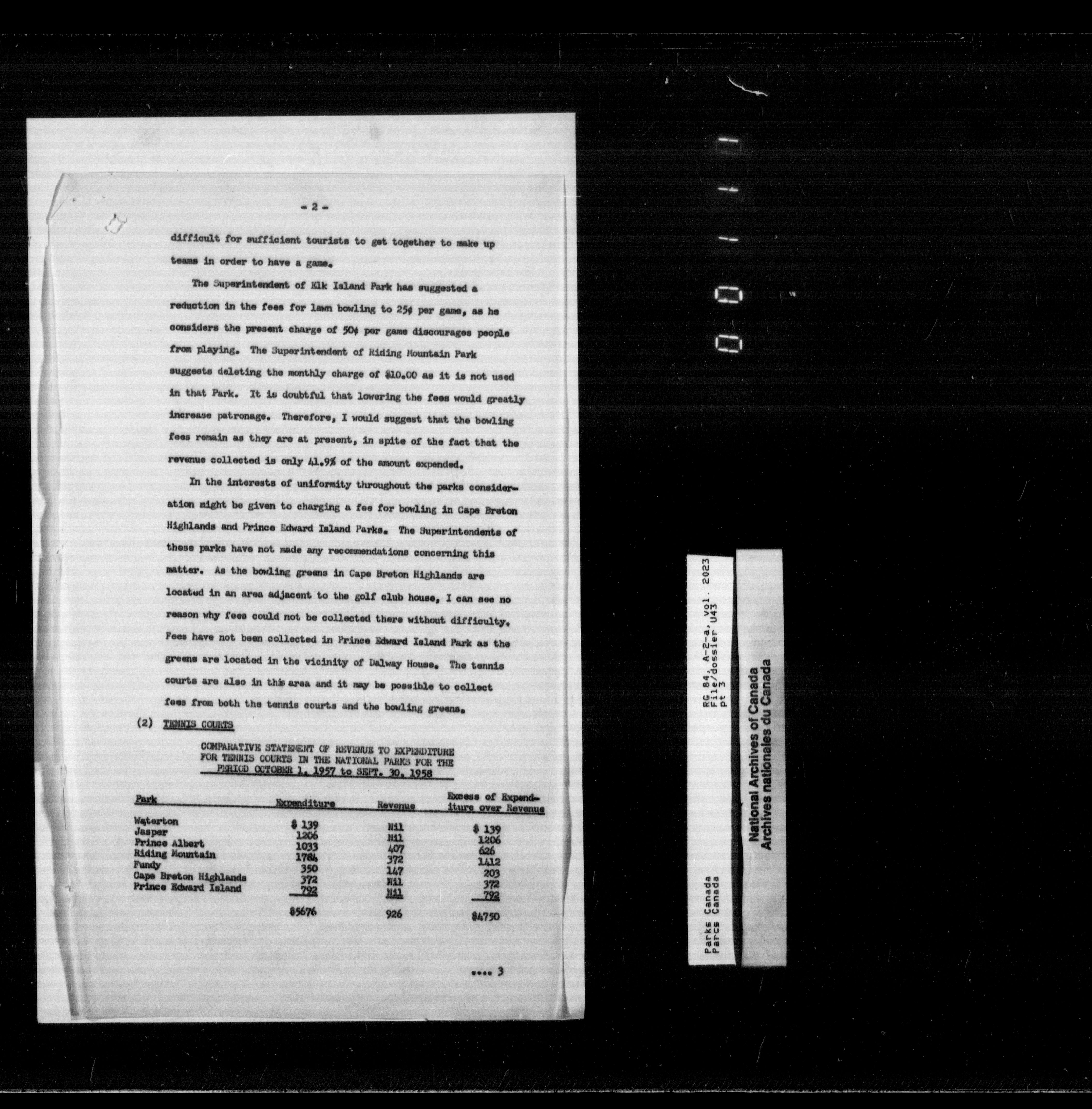 Department of Canadian Heritage, Canadian Parks Service : Park/subject classification system - 9831
