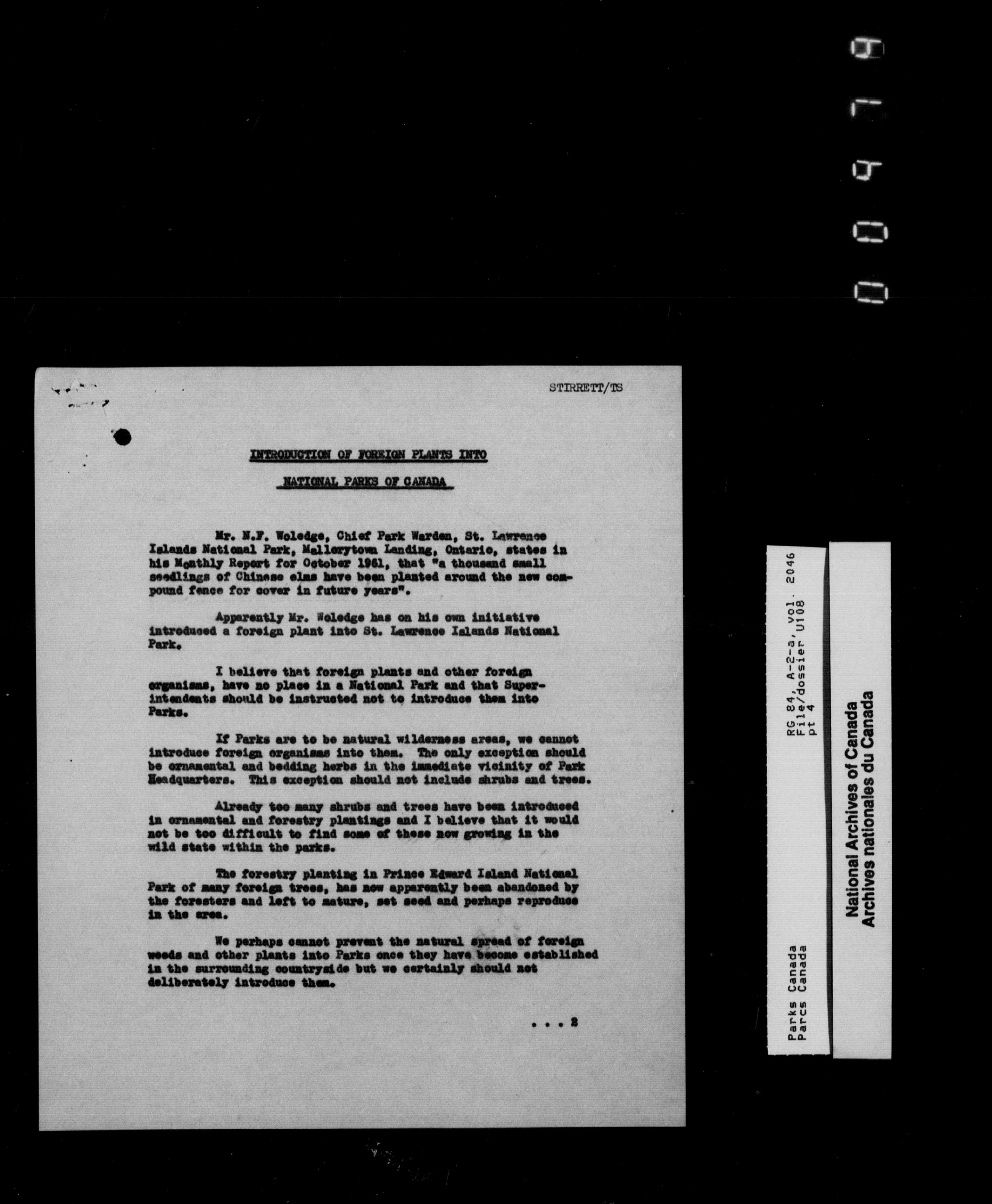 Department of Canadian Heritage, Canadian Parks Service : Park/subject classification system : T-9838