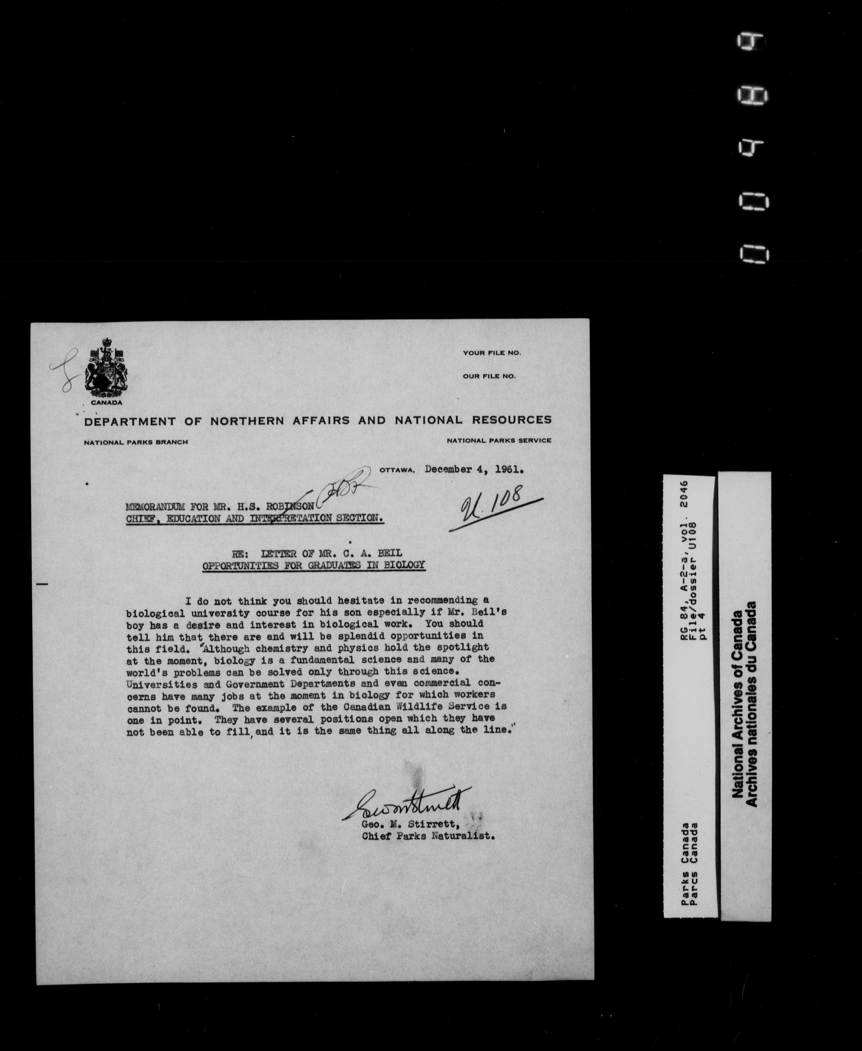 Department of Canadian Heritage, Canadian Parks Service : Park/subject classification system - 9838