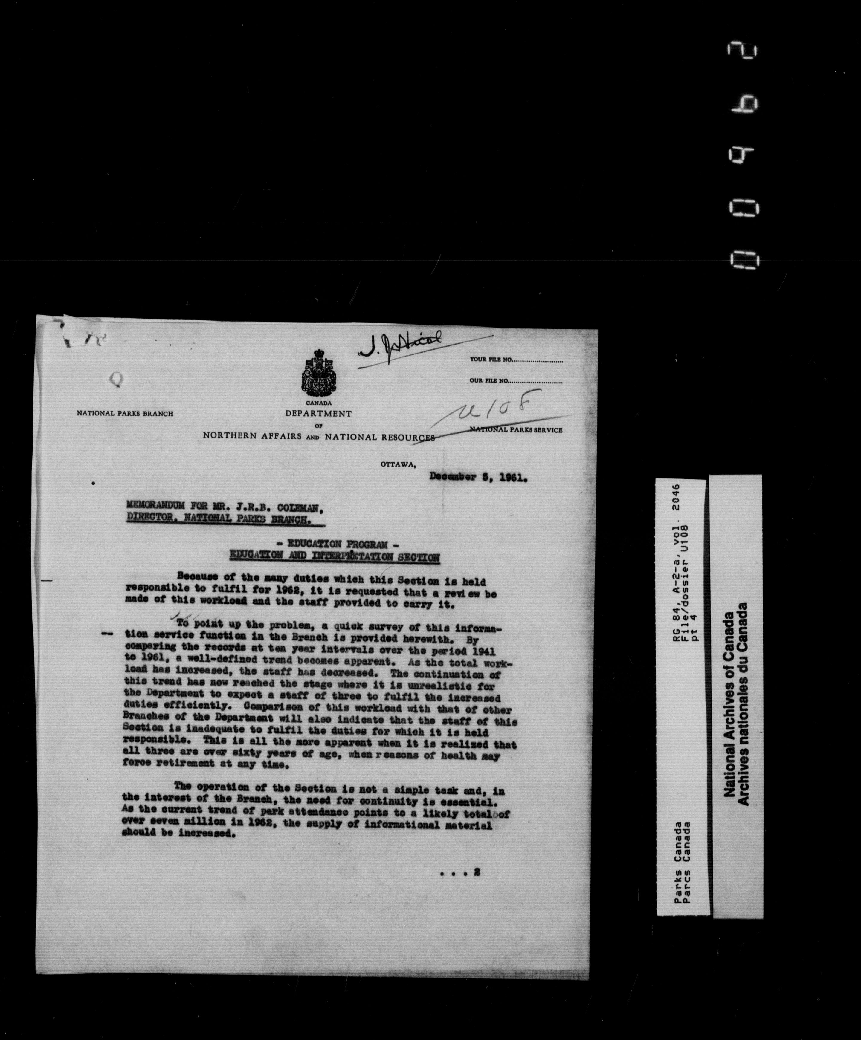 Department of Canadian Heritage, Canadian Parks Service : Park/subject classification system - 9838