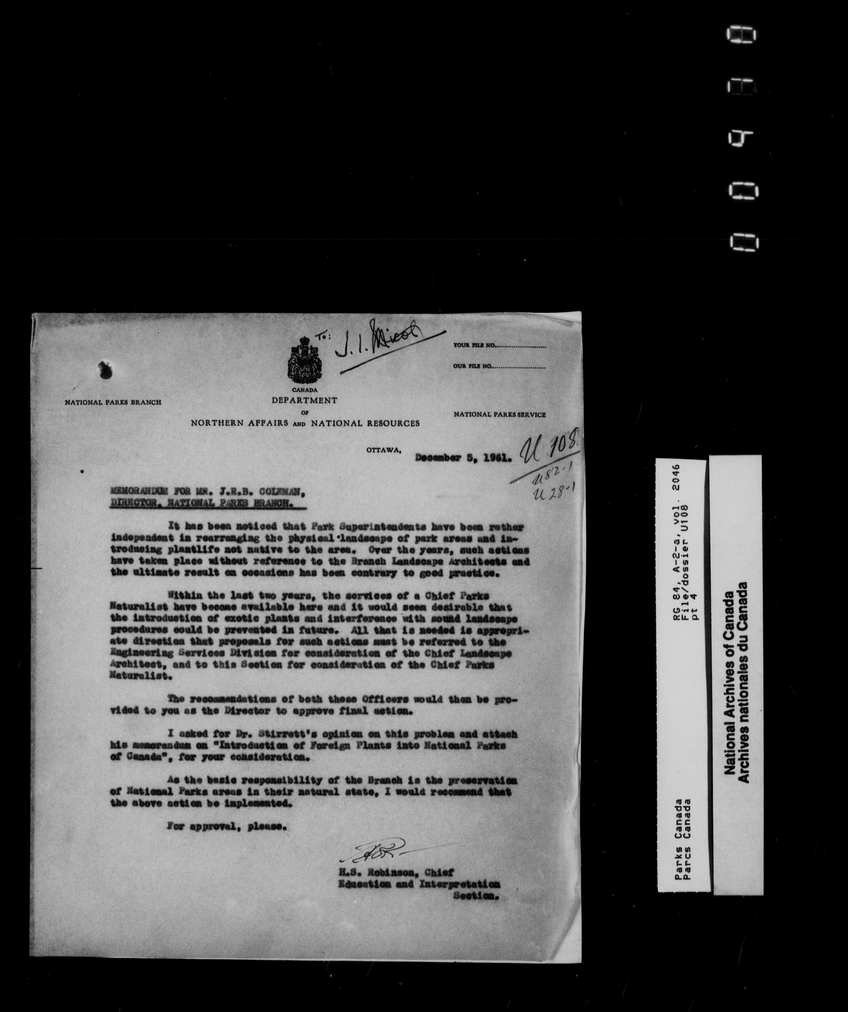 Department of Canadian Heritage, Canadian Parks Service : Park/subject classification system - 9838
