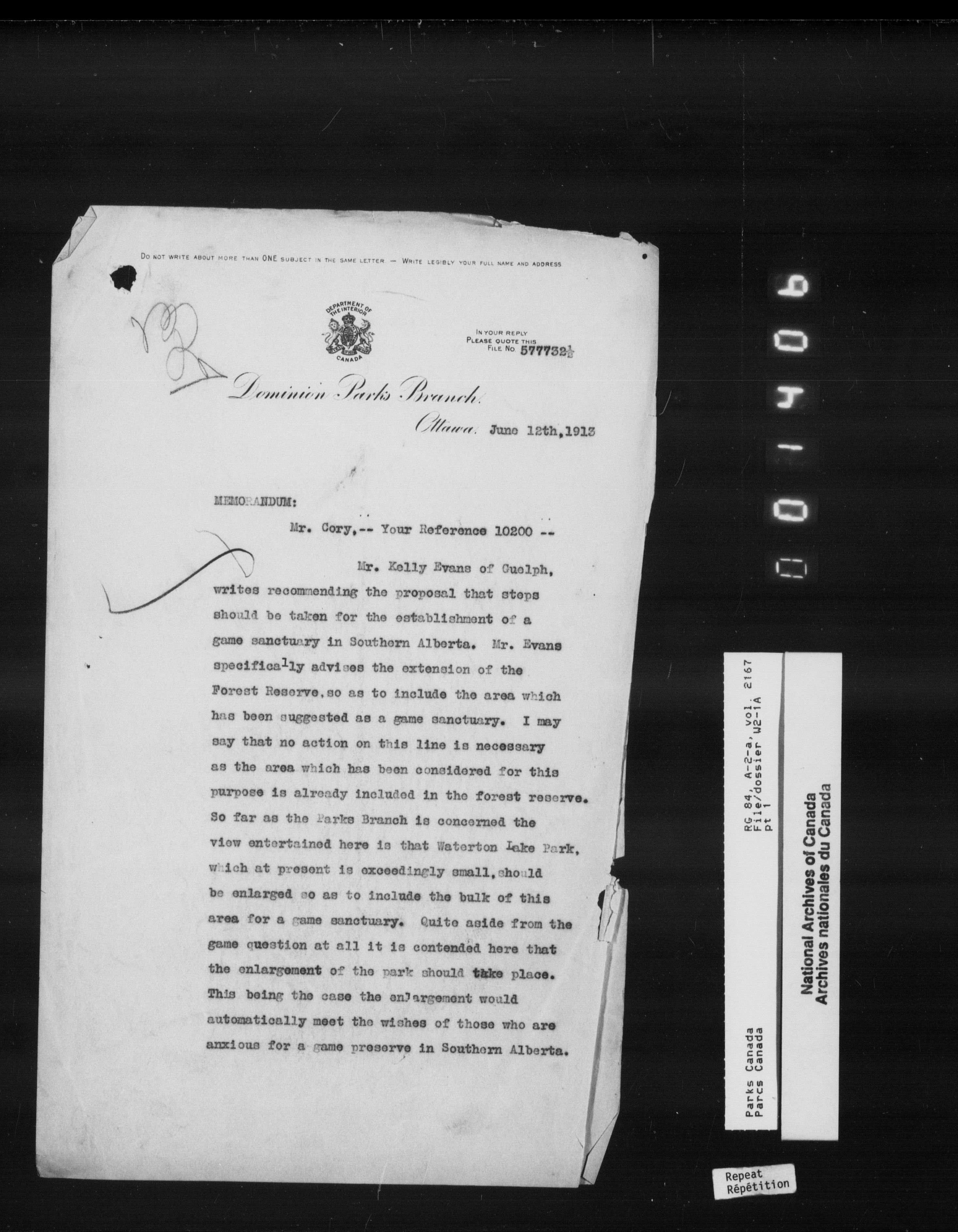 Department of Canadian Heritage, Canadian Parks Service : Park/subject classification system - 9842