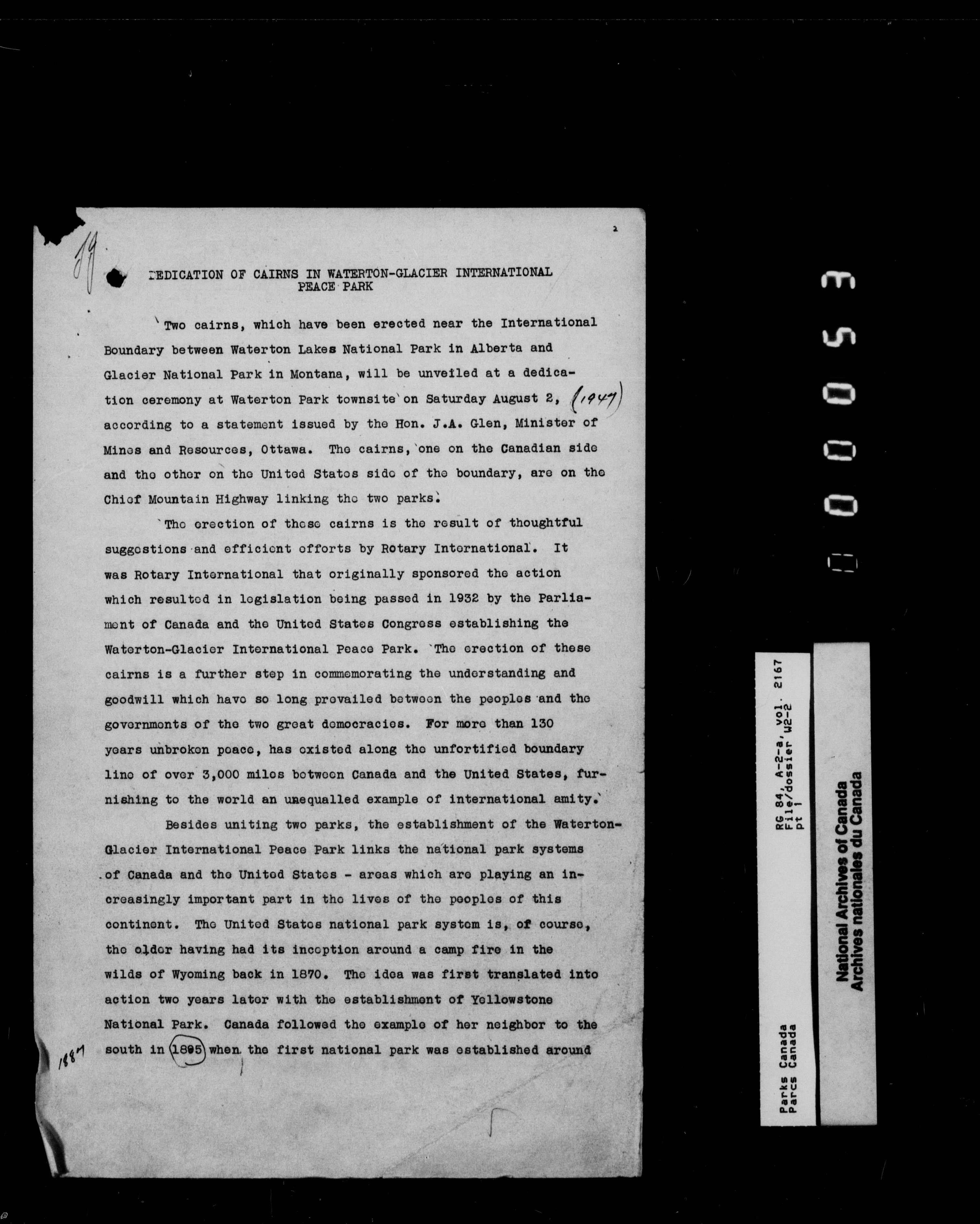 Department of Canadian Heritage, Canadian Parks Service : Park/subject classification system - 9843