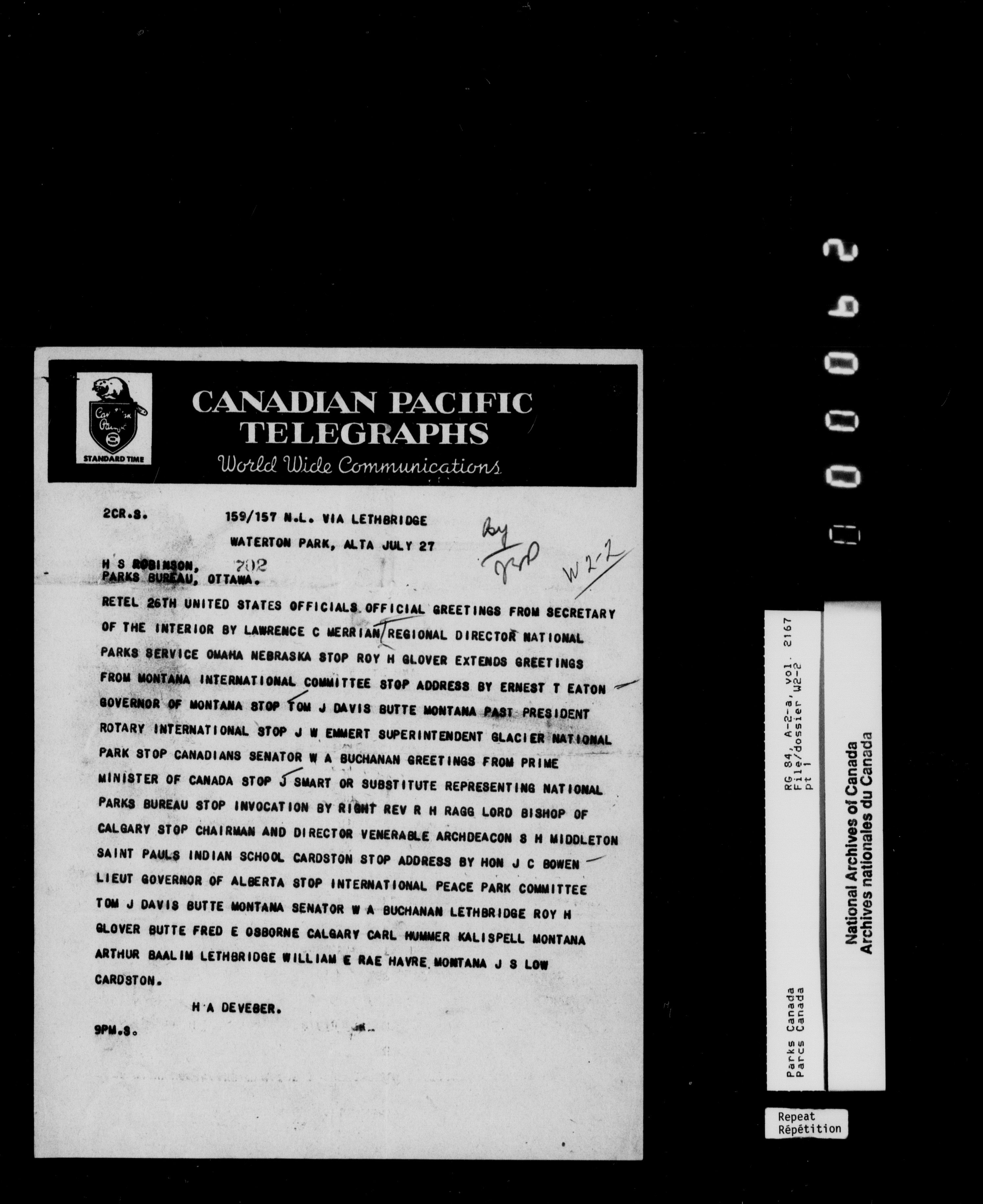 Department of Canadian Heritage, Canadian Parks Service : Park/subject classification system - 9843