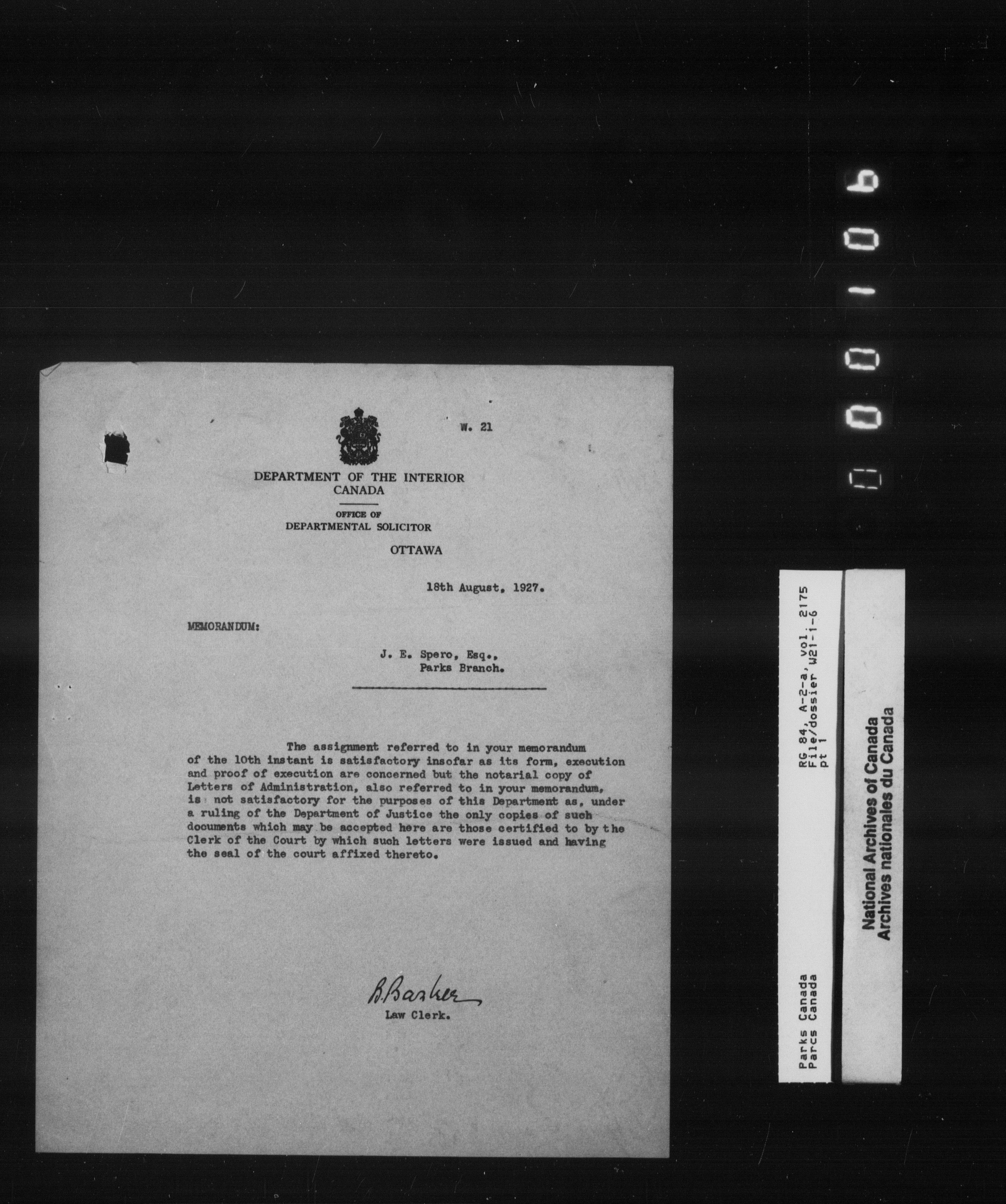 Department of Canadian Heritage, Canadian Parks Service : Park/subject classification system - 9850