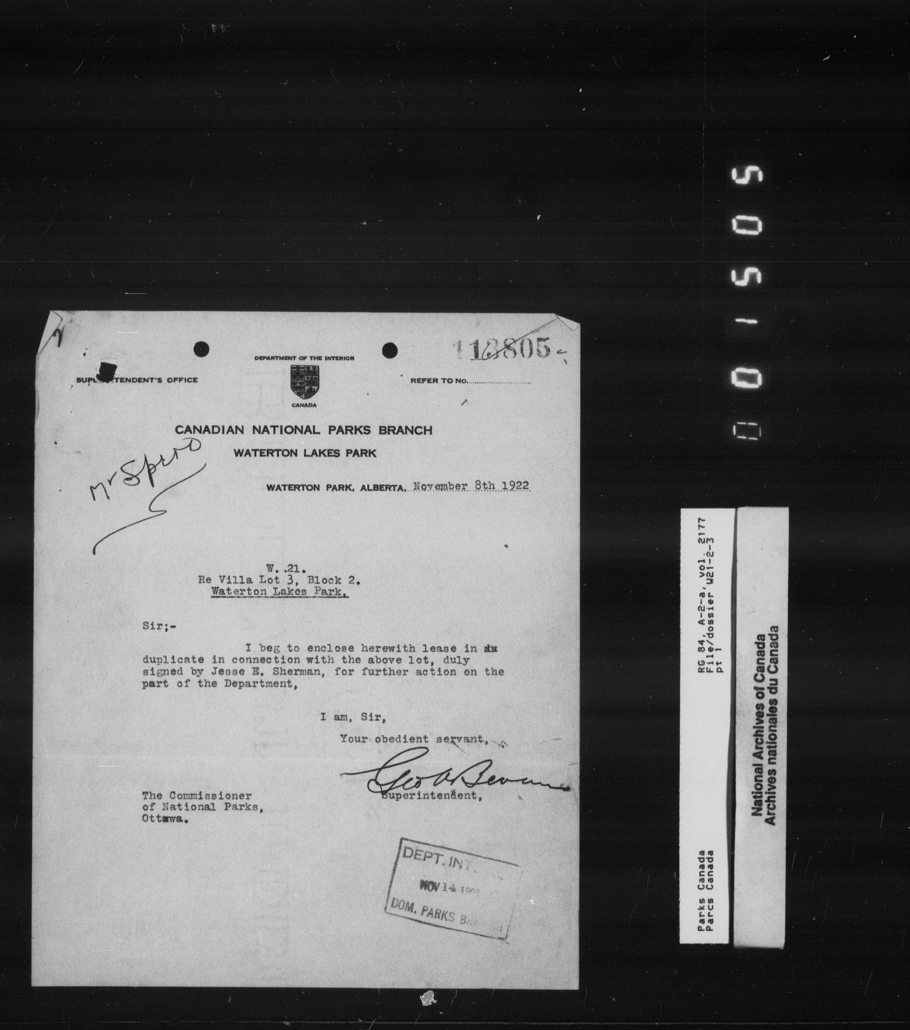 Department of Canadian Heritage, Canadian Parks Service : Park/subject classification system - 9851