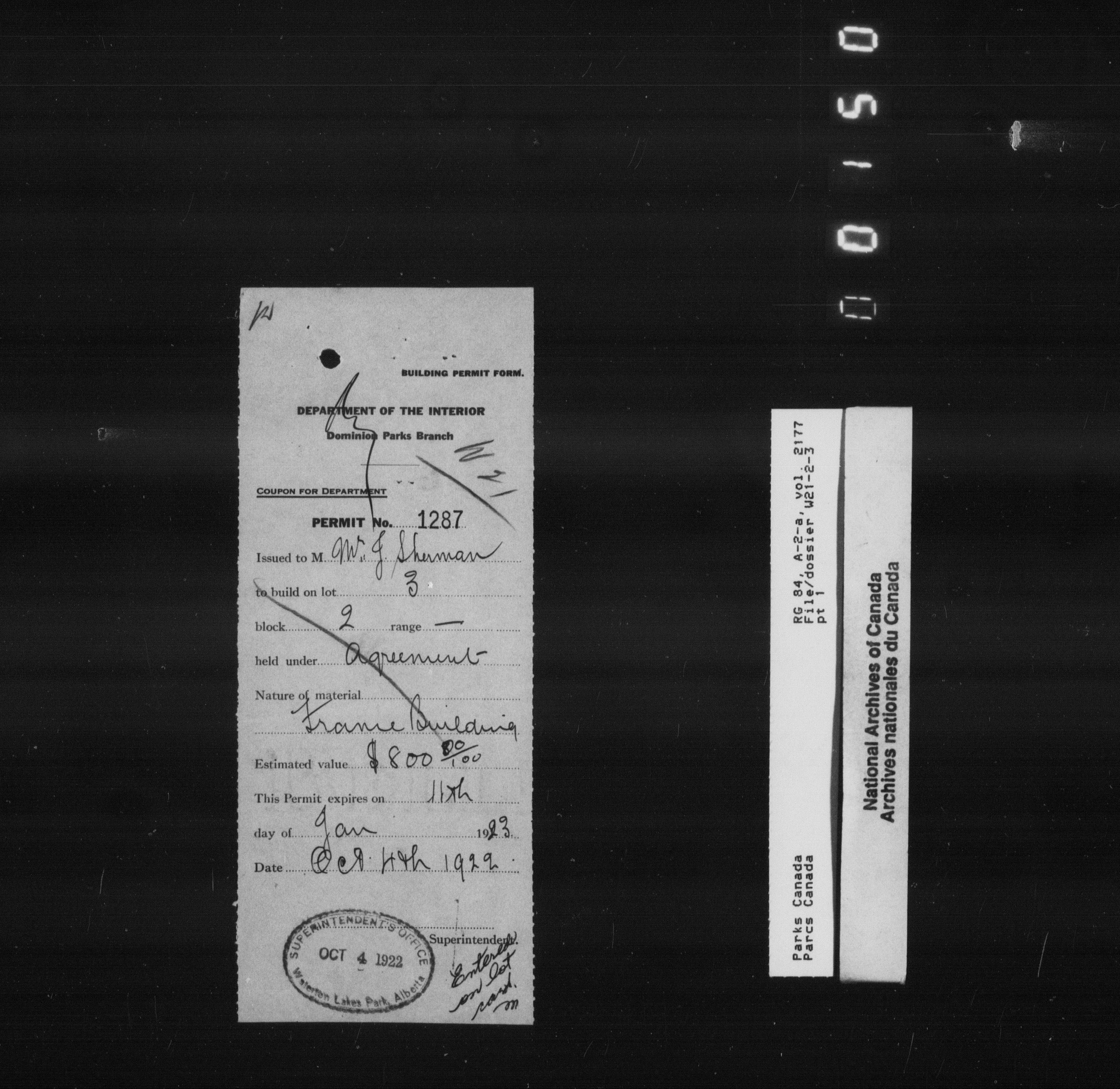 Department of Canadian Heritage, Canadian Parks Service : Park/subject classification system - 9851