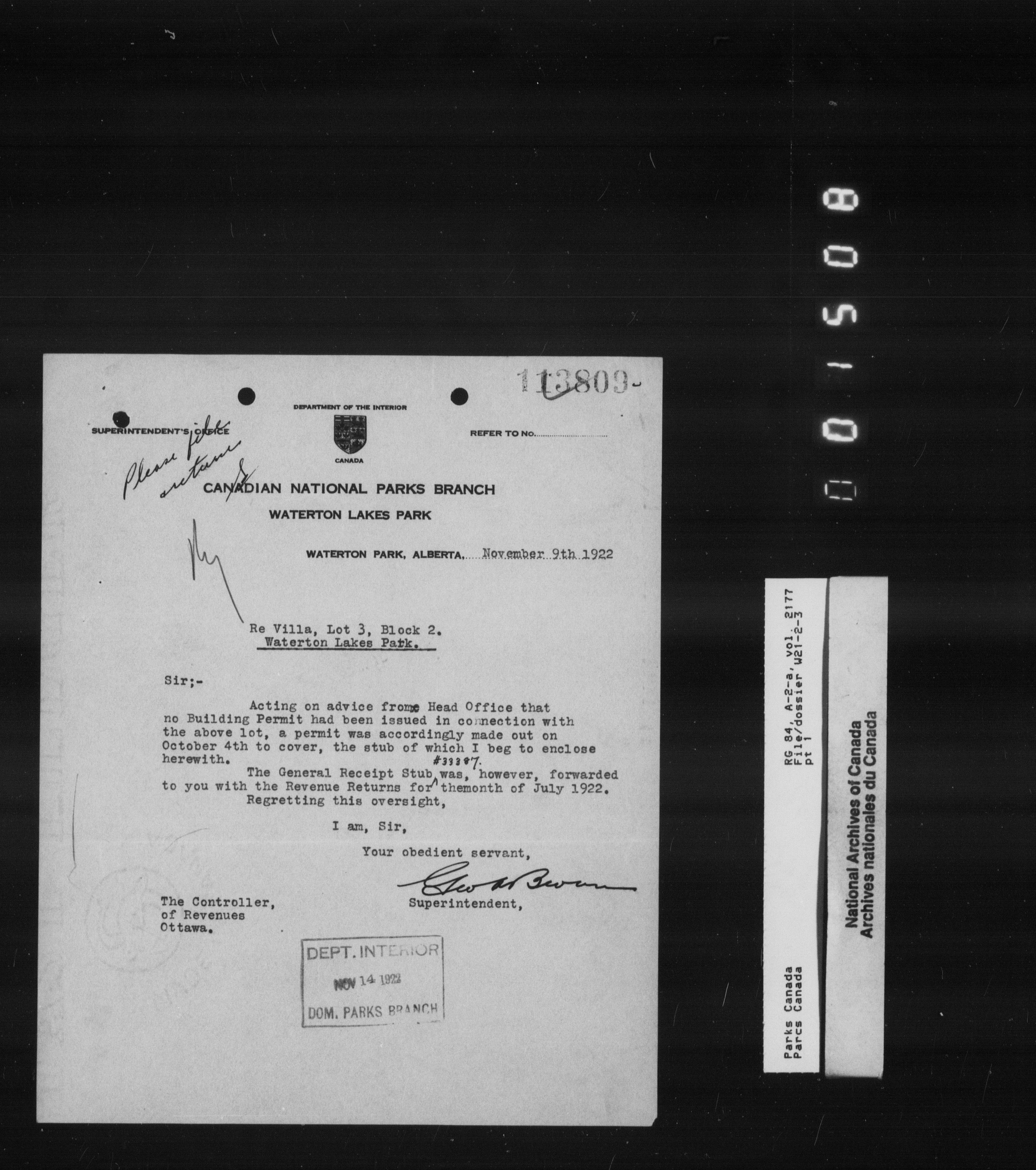 Department of Canadian Heritage, Canadian Parks Service : Park/subject classification system - 9851
