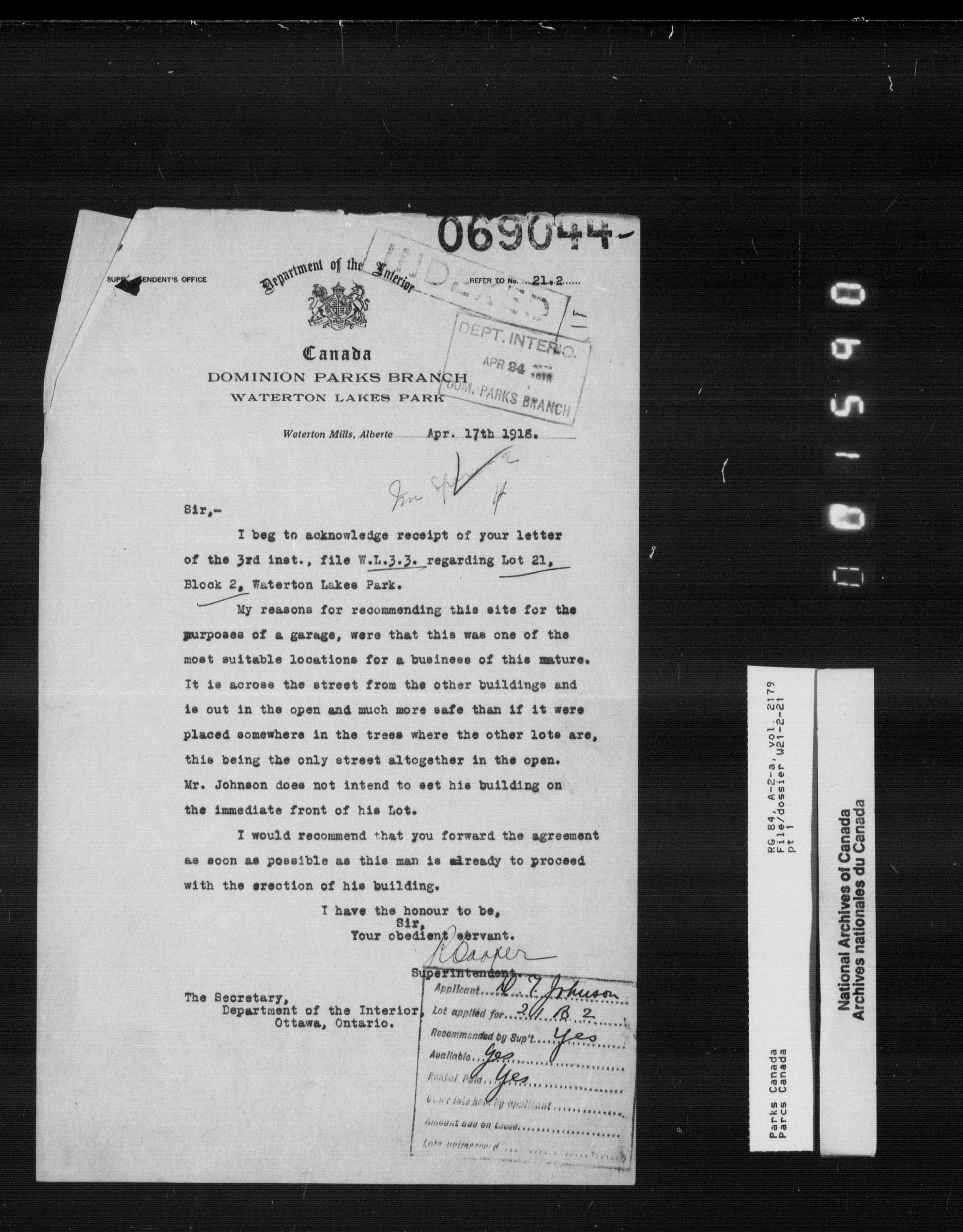 Department of Canadian Heritage, Canadian Parks Service : Park/subject classification system - 9853