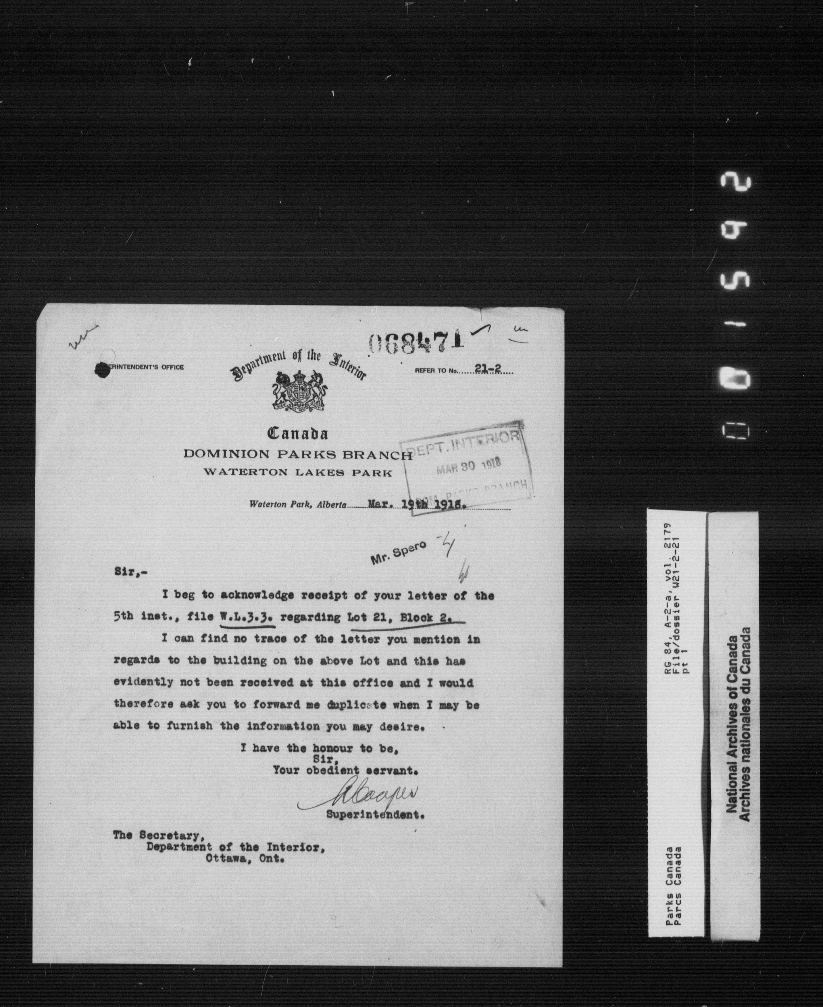 Department of Canadian Heritage, Canadian Parks Service : Park/subject classification system - 9853
