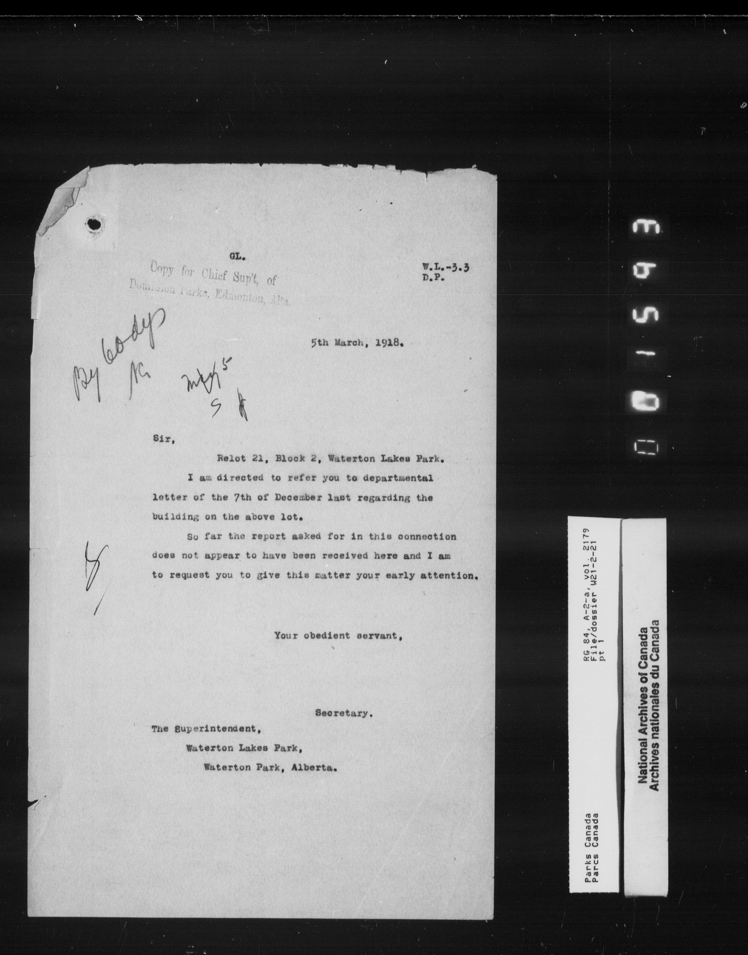 Department of Canadian Heritage, Canadian Parks Service : Park/subject classification system - 9853