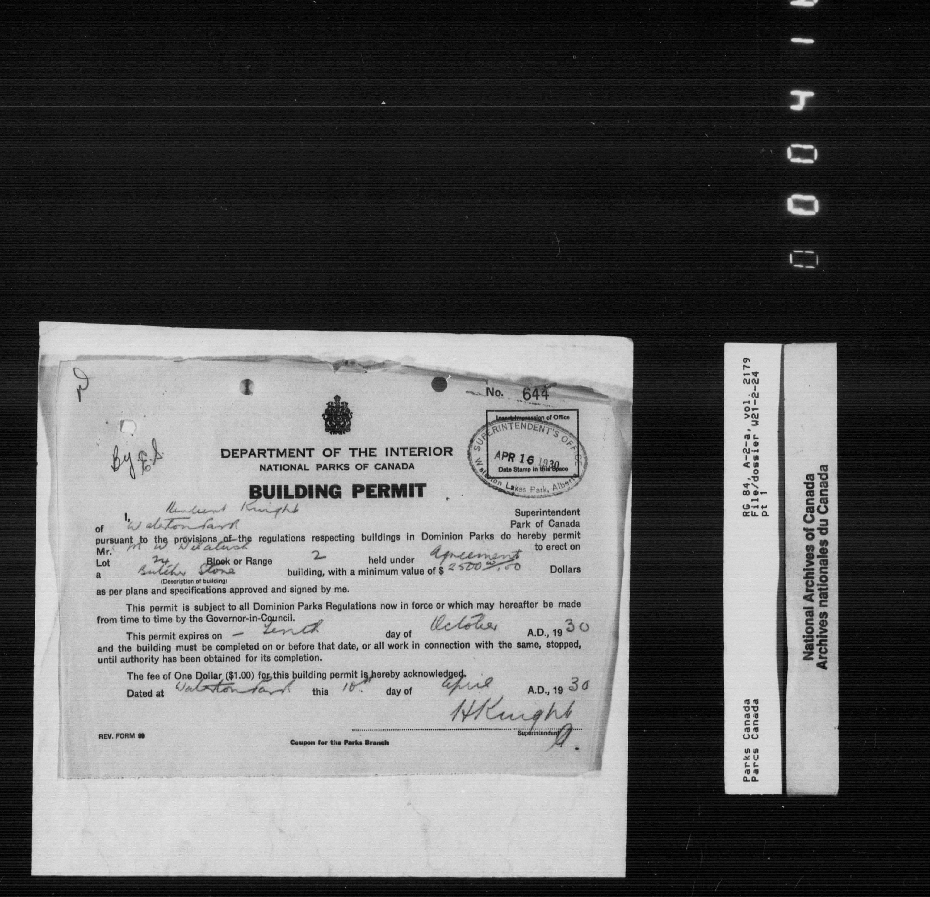 Department of Canadian Heritage, Canadian Parks Service : Park/subject classification system - 9854