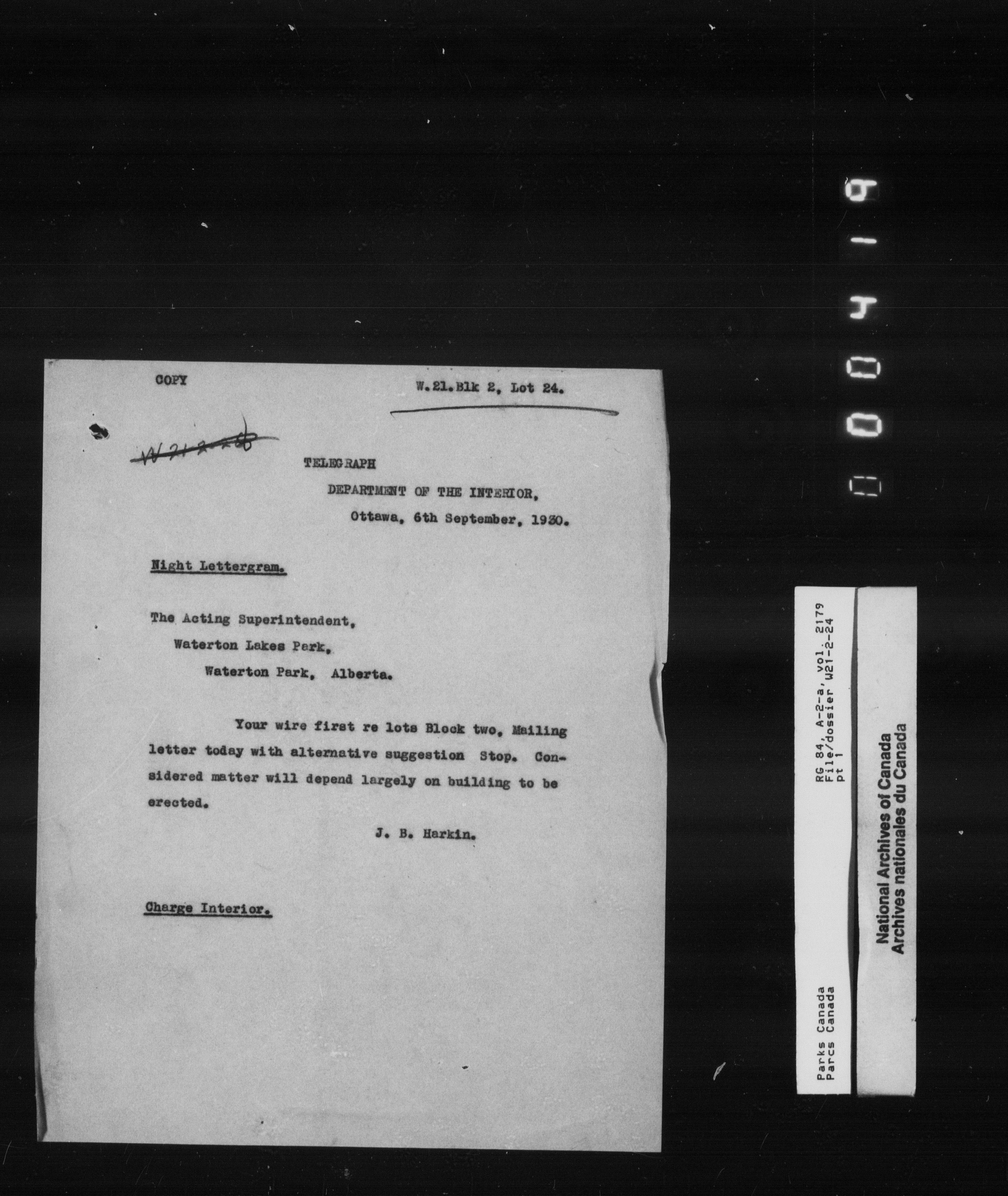 Department of Canadian Heritage, Canadian Parks Service : Park/subject classification system - 9854