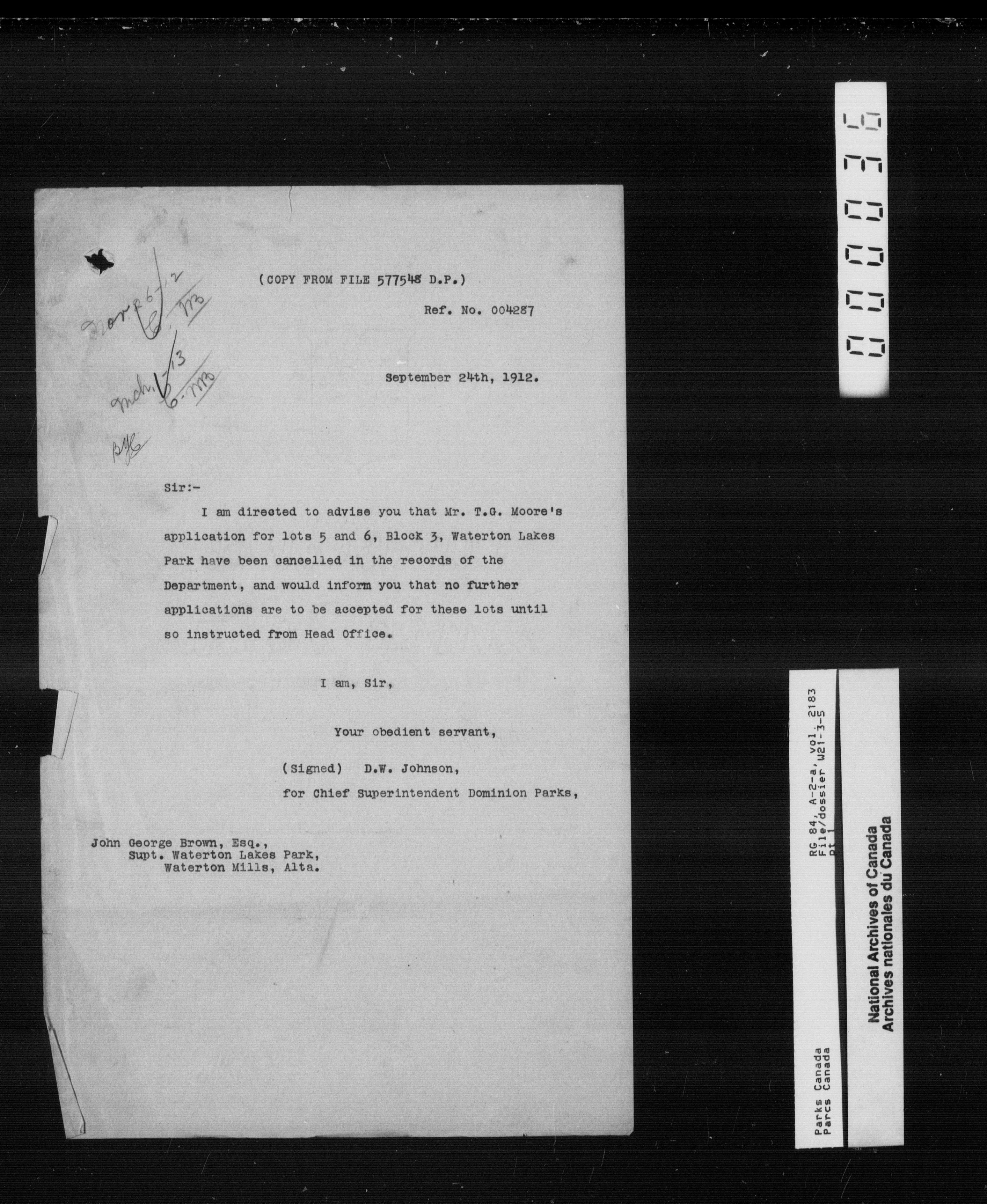 Department of Canadian Heritage, Canadian Parks Service : Park/subject classification system - 9858
