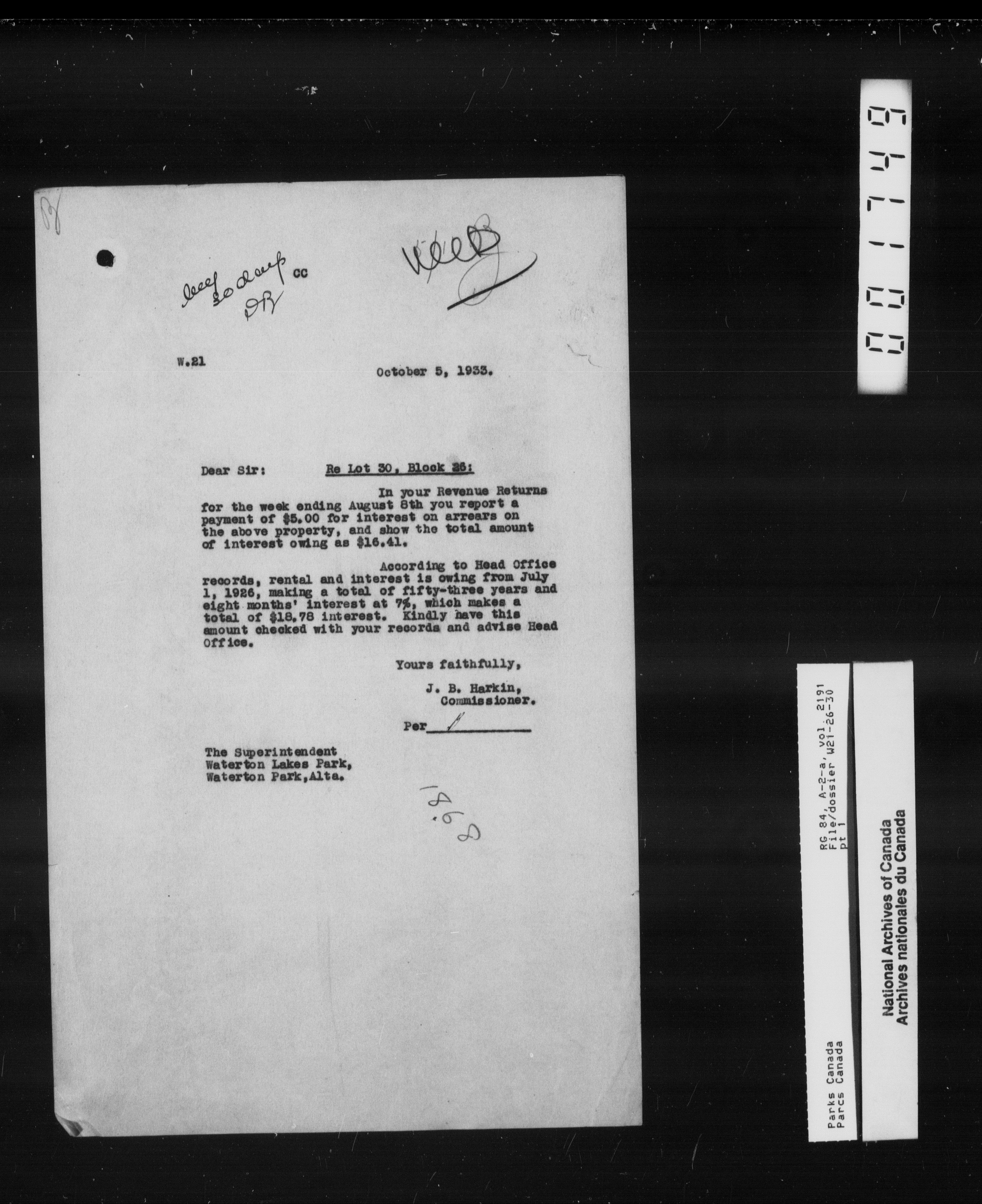 Department of Canadian Heritage, Canadian Parks Service : Park/subject classification system - 9863