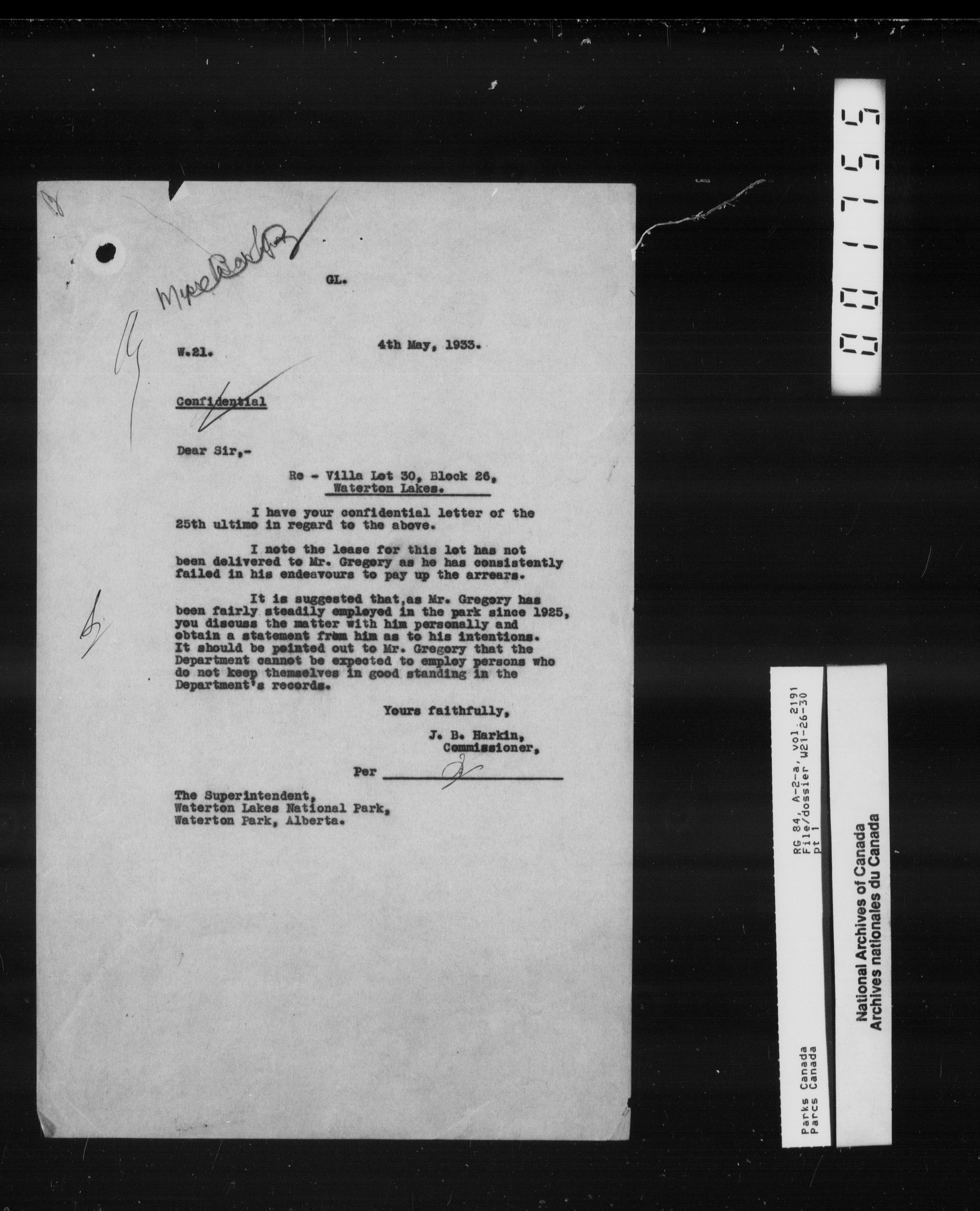 Department of Canadian Heritage, Canadian Parks Service : Park/subject classification system - 9863