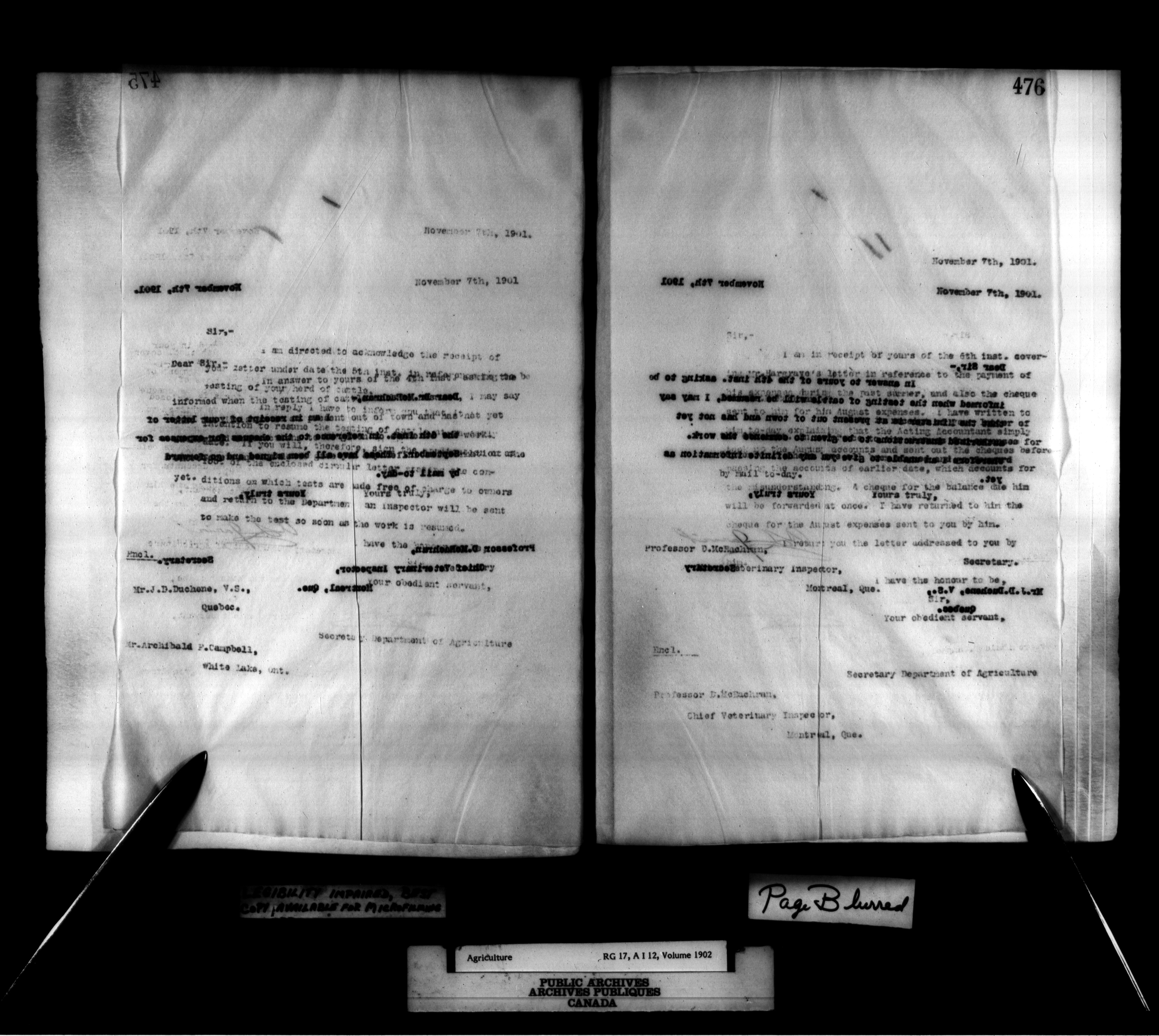 Department of Agriculture : Secretary and Assistant Deputy Minister's letterbooks, 1881-1916 : T-987