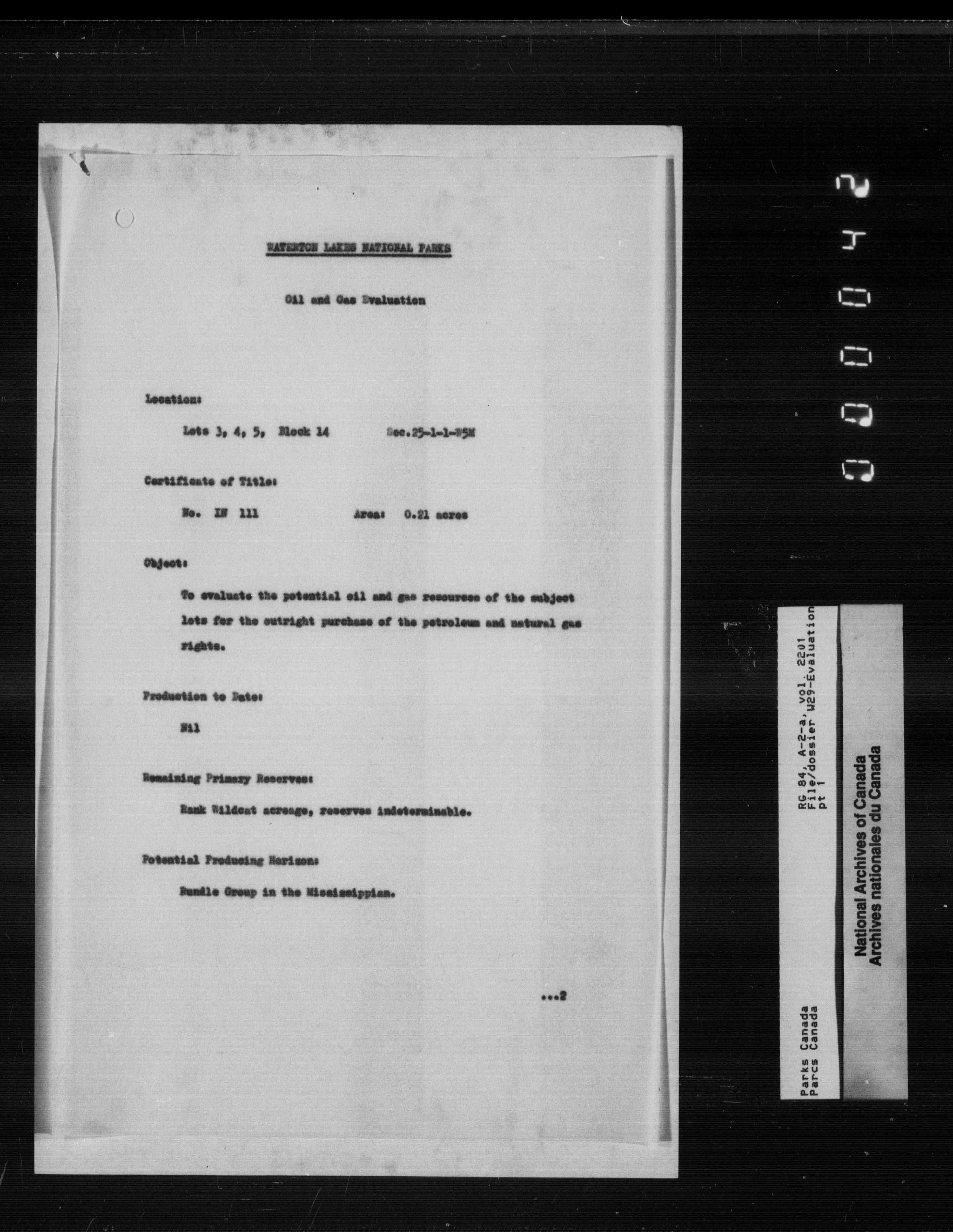 Department of Canadian Heritage, Canadian Parks Service : Park/subject classification system - 9872