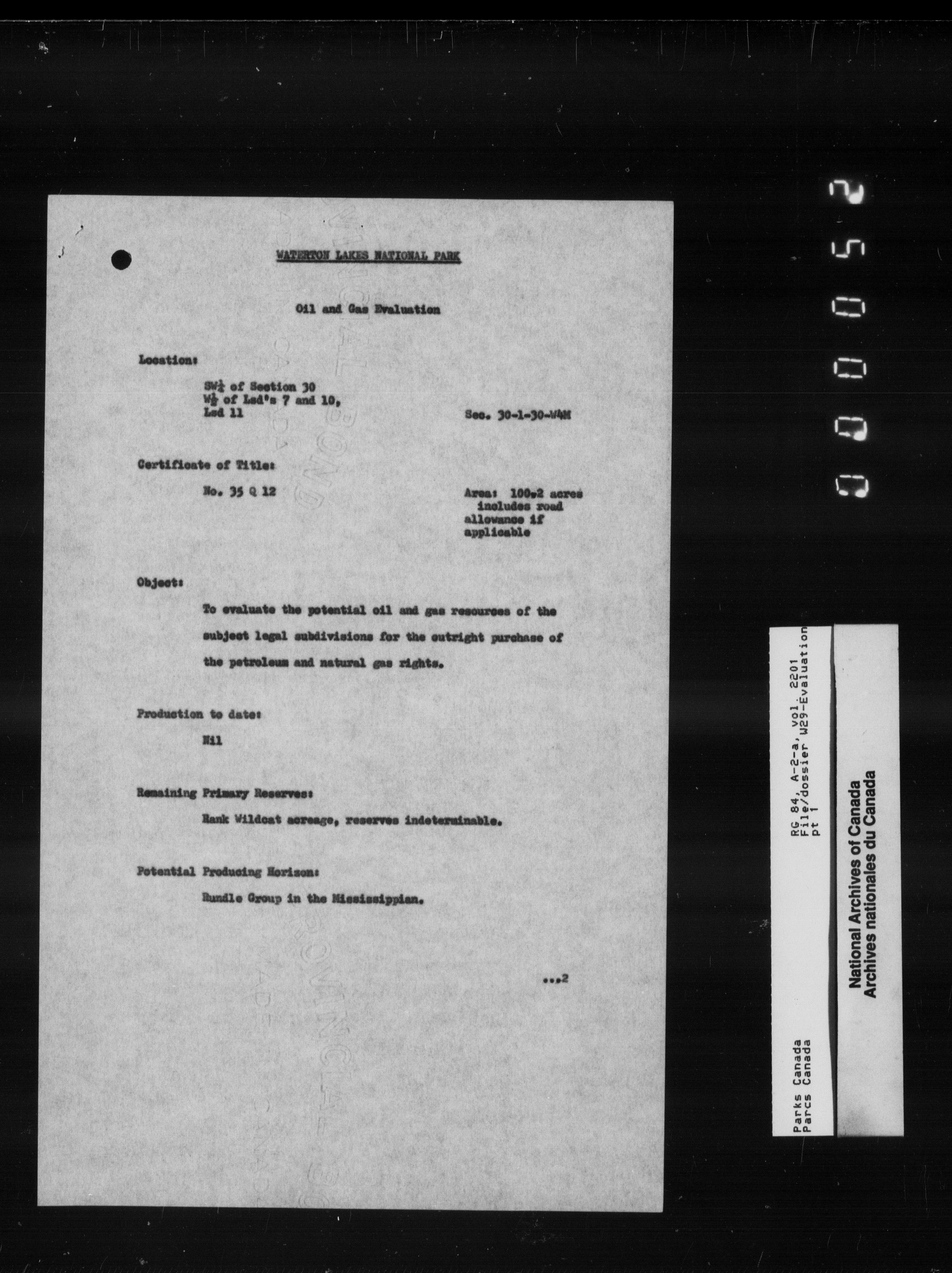 Department of Canadian Heritage, Canadian Parks Service : Park/subject classification system - 9872