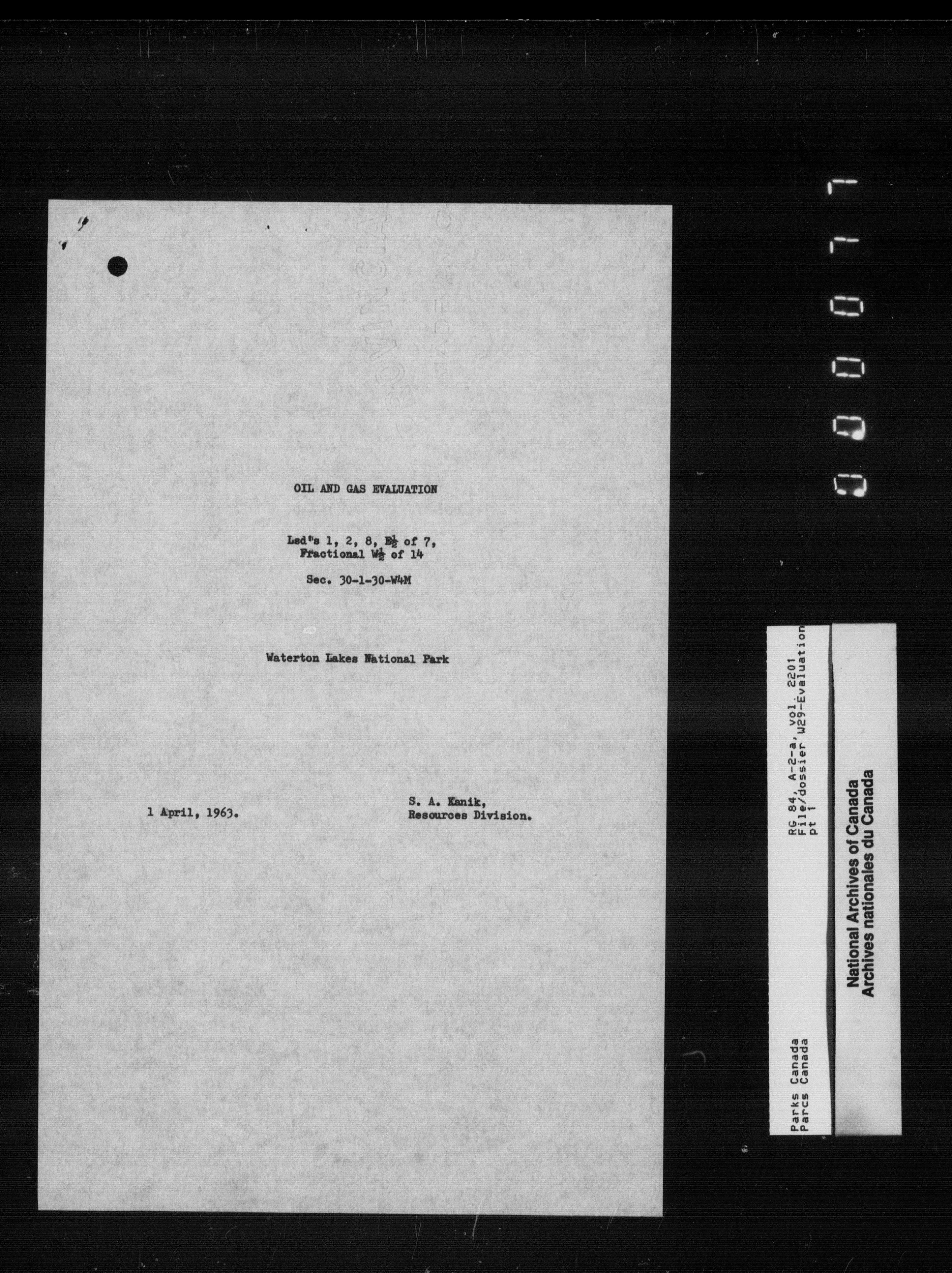Department of Canadian Heritage, Canadian Parks Service : Park/subject classification system - 9872