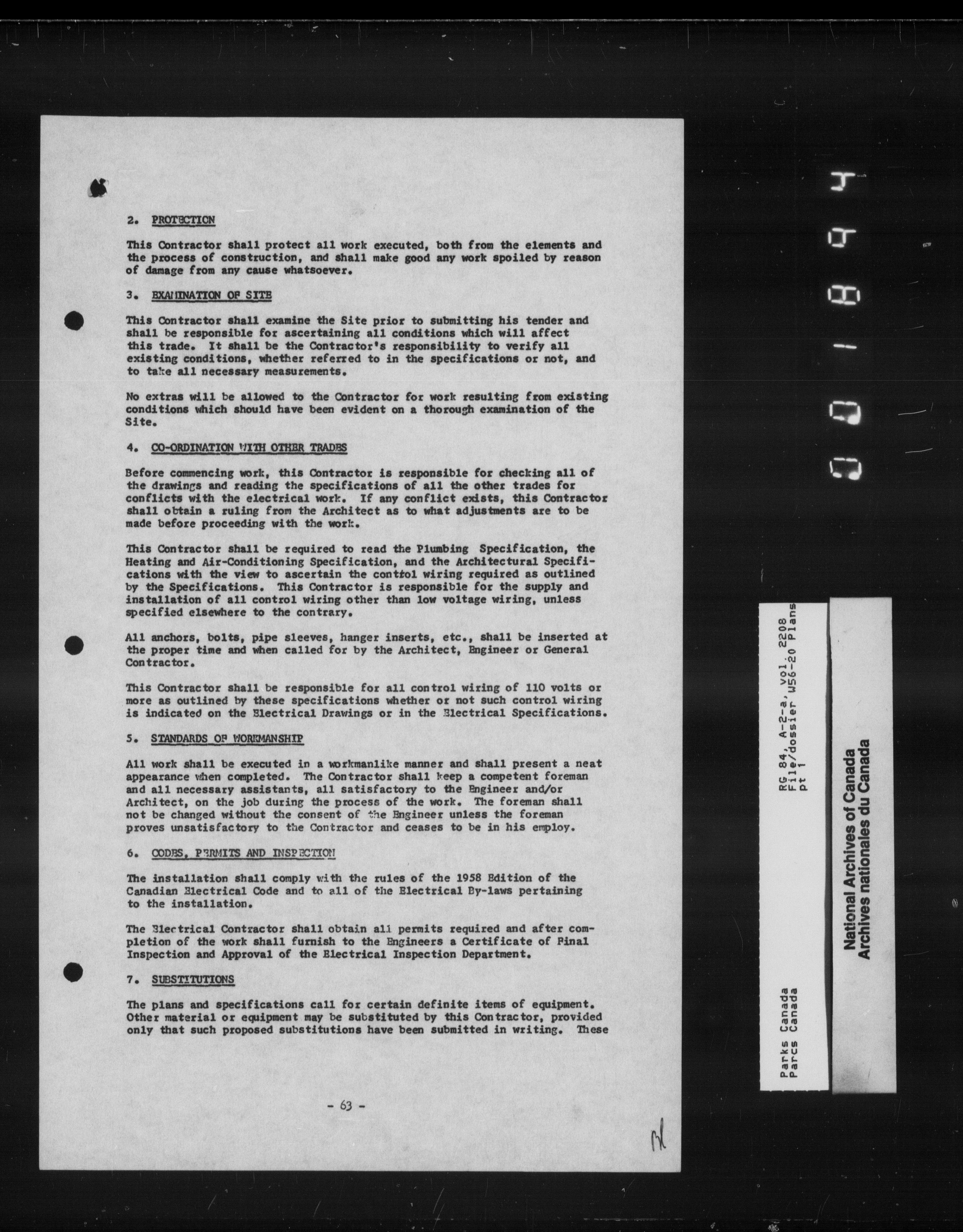 Department of Canadian Heritage, Canadian Parks Service : Park/subject classification system : T-9876