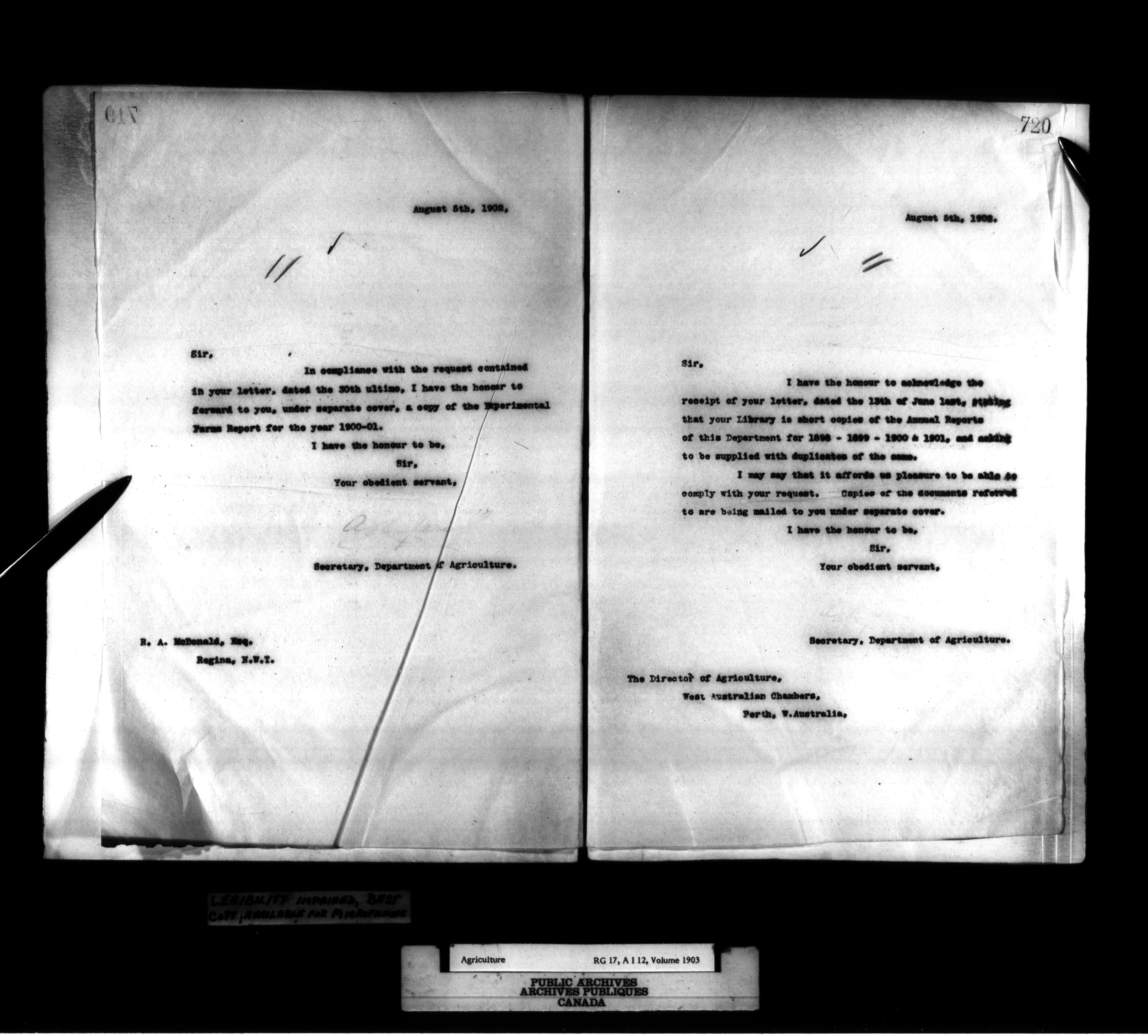 Department of Agriculture : Secretary and Assistant Deputy Minister's letterbooks, 1881-1916 - 988
