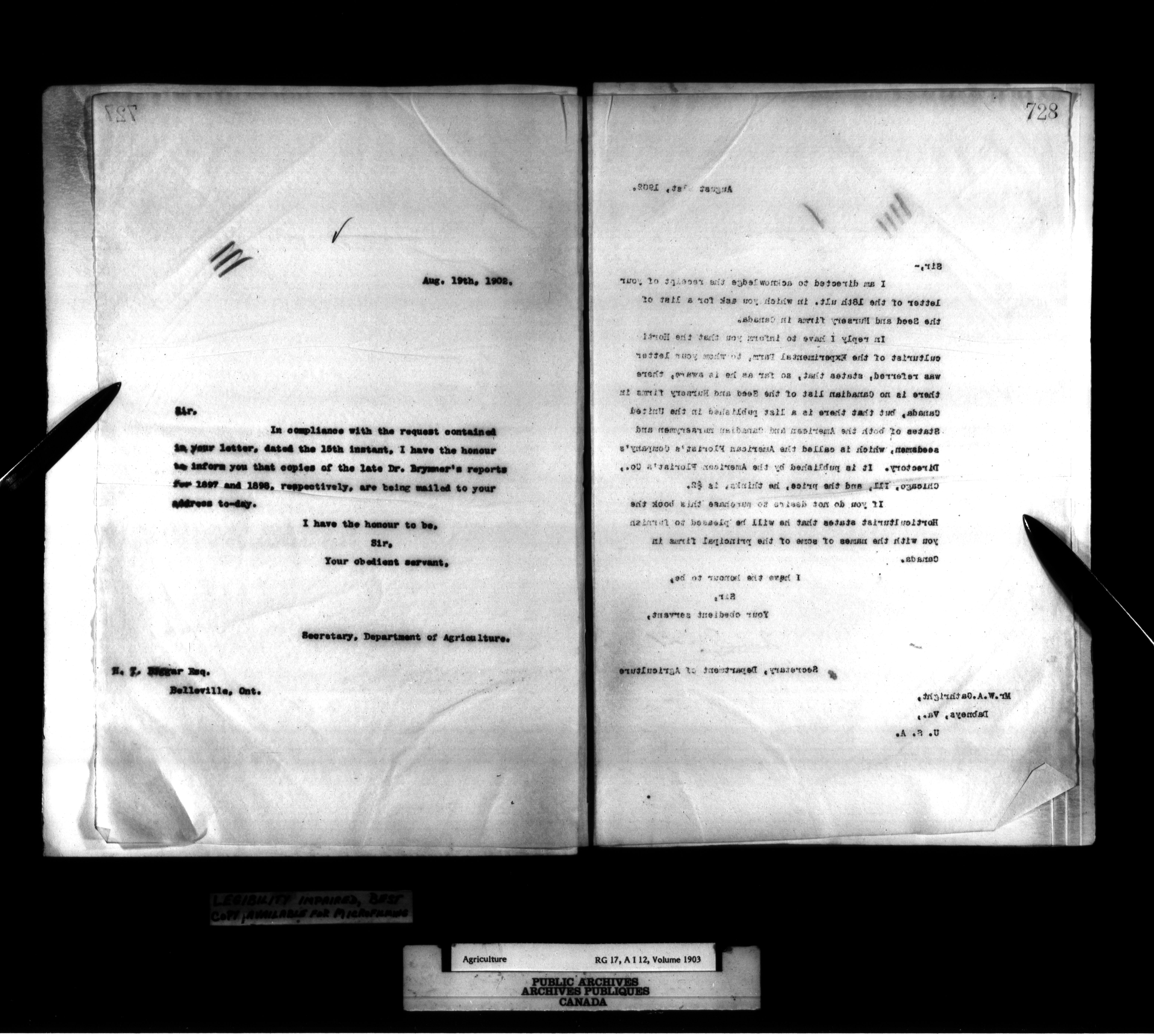 Department of Agriculture : Secretary and Assistant Deputy Minister's letterbooks, 1881-1916 : T-988
